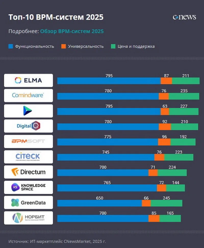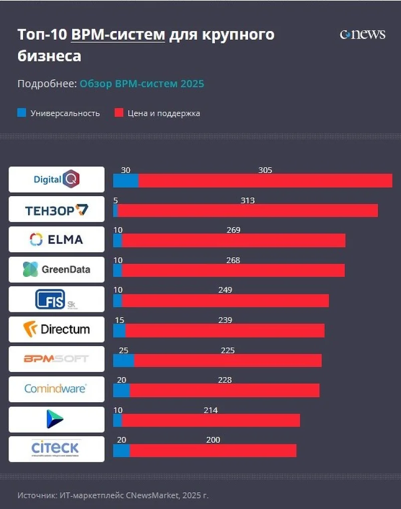 Платформа CNewsMarket впервые представила специализированный обзор BPM-решений для корпоративного сектора, где были учтены параметры, особенно важные для предприятий масштаба Enterprise.
