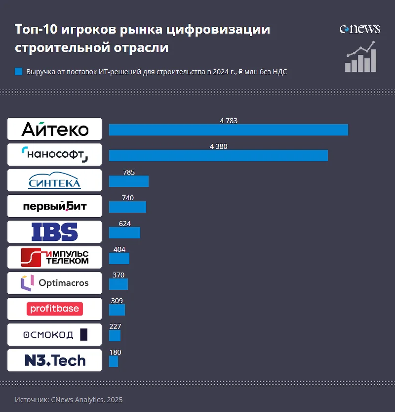 В российском строительном секторе наблюдается рост цифровой зрелости компаний. Тем не менее, как отмечают эксперты CNews Analytics, ситуация в регионах отличается. Где-то на площадках уже задействуют роботов и дроны, а где-то к внедрению даже обязательных цифровых средств подходят поверхностно. Ключевыми направлениями развития остаются искусственный интеллект, технологии информационного моделирования и цифровые двойники.