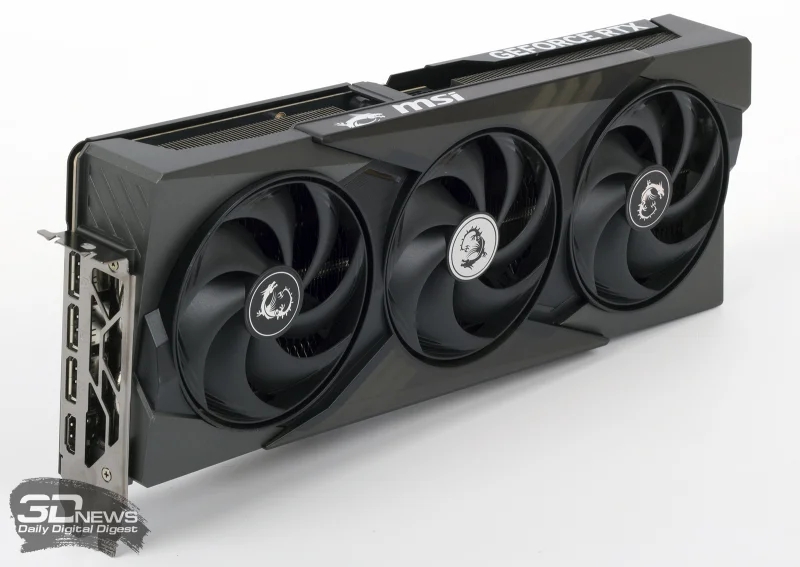 Видеокарта демонстрирует низкие температуры и практически бесшумную работу. Конструкция усилена металлической задней панелью. О надёжности компонента тоже можно не волноваться — система питания GPU и памяти построена по схеме 15+3. Каждый канал оснащён мощным модулем Monolithic MPS MP87993, способным выдерживать ток до 50 А.
