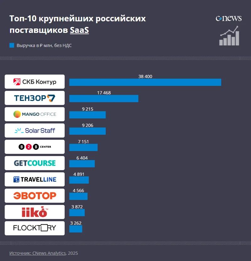 CNews Analytics: Ведущие поставщики SaaS на российском рынке