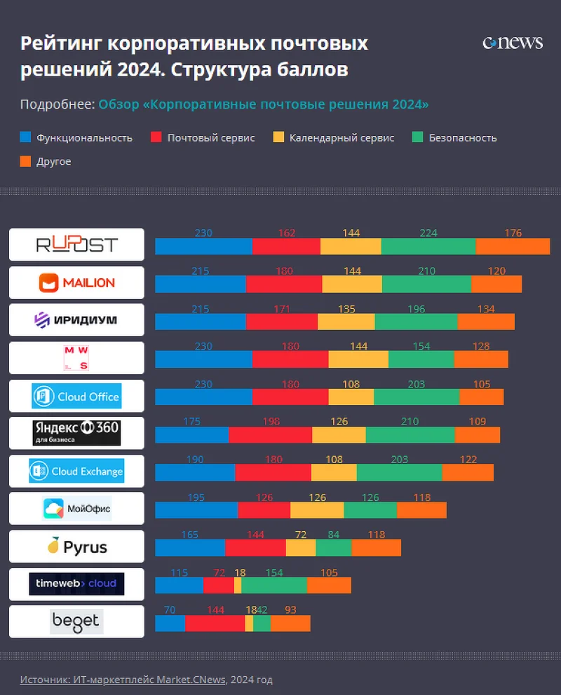 Market.CNews: Классификация корпоративных почтовых платформ 2024