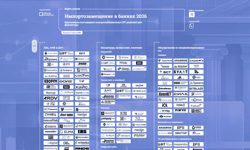 На российском рынке программного обеспечения и оборудования для банков регулярно появляются свежие решения. Обновленная карта CNews Analytics «Замещение импорта в банковской сфере» демонстрирует как количественные, так и качественные характеристики этого сегмента. Однако, несмотря на постоянное совершенствование продуктов отечественными разработчиками, полностью удовлетворить запросы клиентов, особенно крупных, пока не получается.