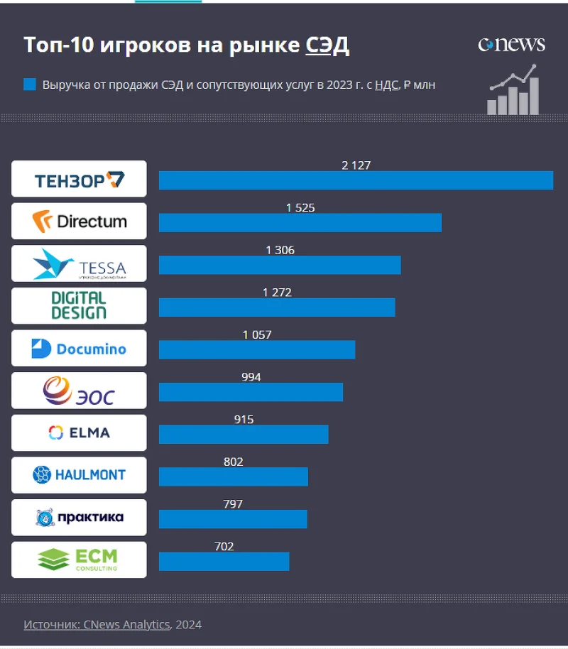 CNews Analytics: Ведущие участники рынка систем электронного документооборота
