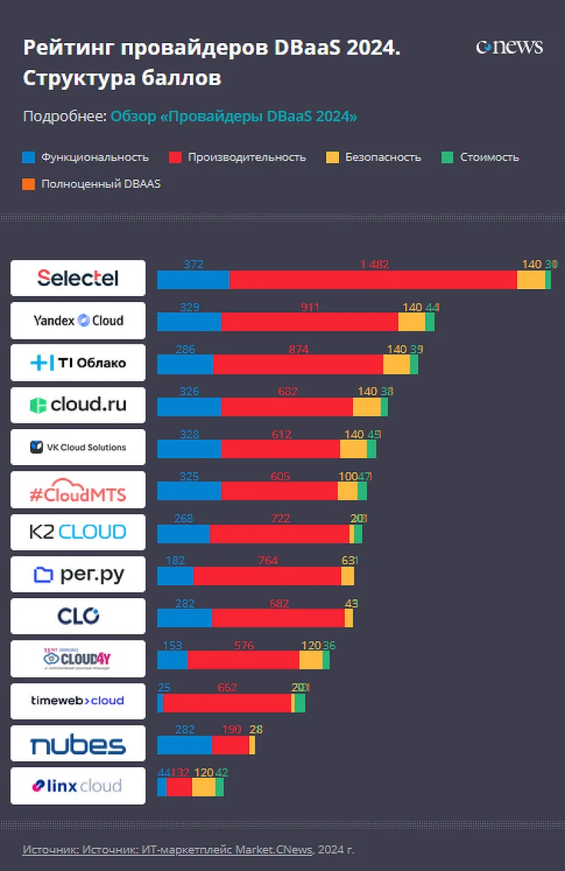 Market.CNews: Классификация поставщиков DBaaS 2024