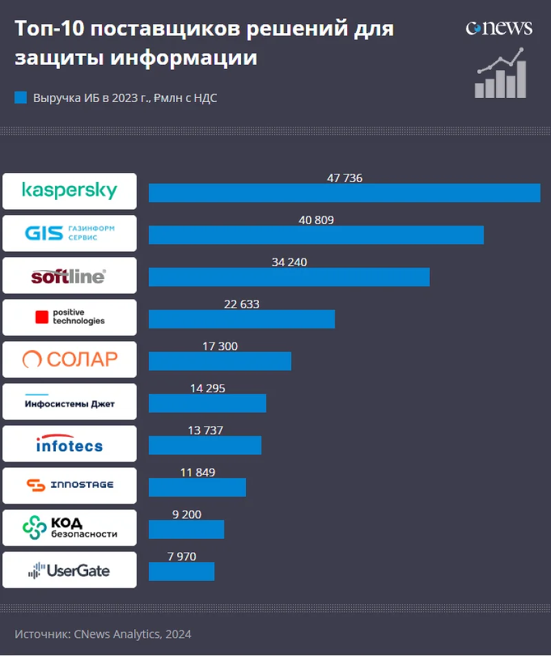 Свыше пятидесяти российских организаций в сфере информационной безопасности имеют годовой оборот от миллиарда рублей