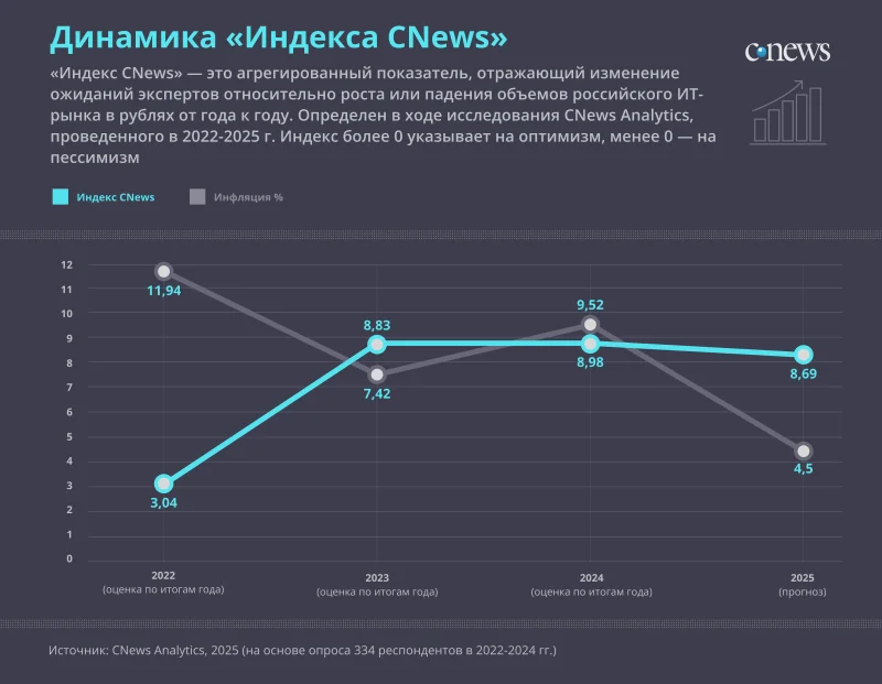 Индикатор CNews: Специалисты предсказывают увеличение российского IT-рынка в 2025 году, однако настроения стали сдержаннее
