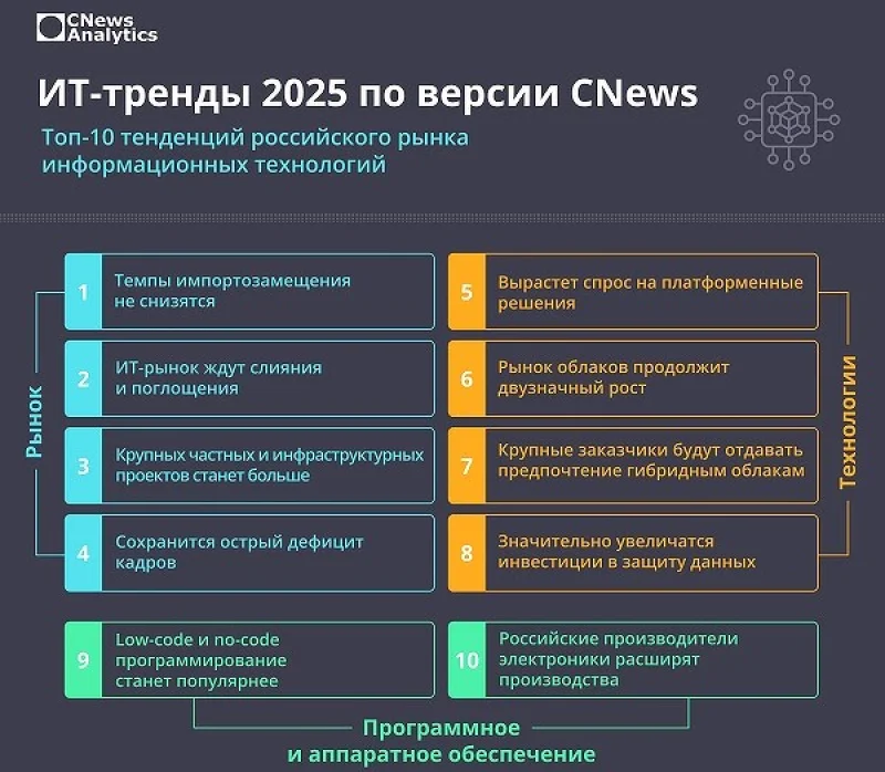 Десять ключевых технологических направлений в России на 2025 год по оценке CNews