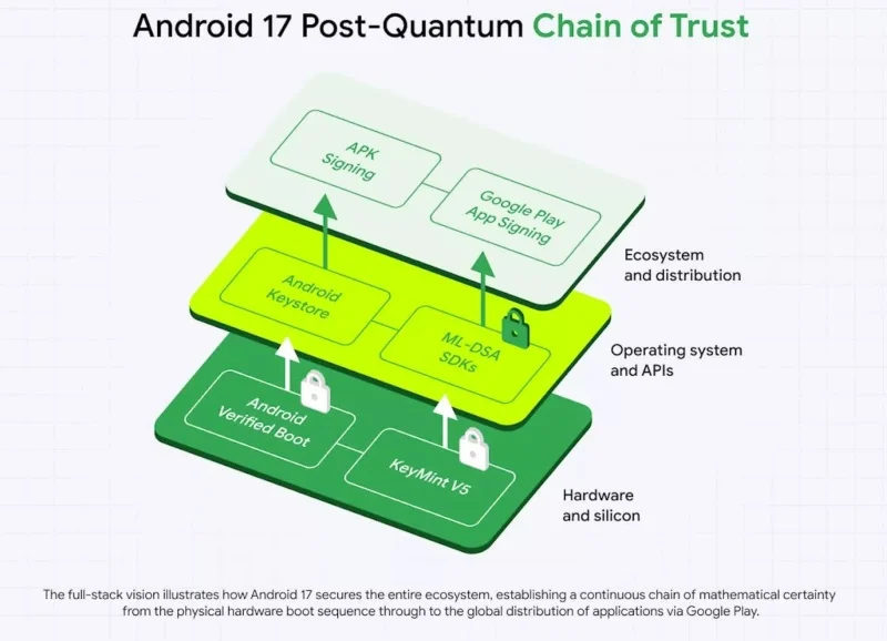 Параллельно с этим Google представила развёрнутый план по обеспечению квантовой устойчивости платформы Android. Компания планирует внедрить поддержку алгоритма цифровой подписи ML-DSA, утверждённого Национальным институтом стандартов и технологий США, уже в бета-версии Android 17. Это позволит разработчикам использовать постквантовую криптографию для подписи и проверки подлинности приложений.