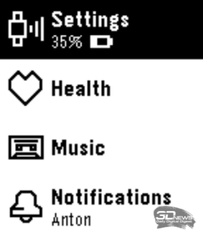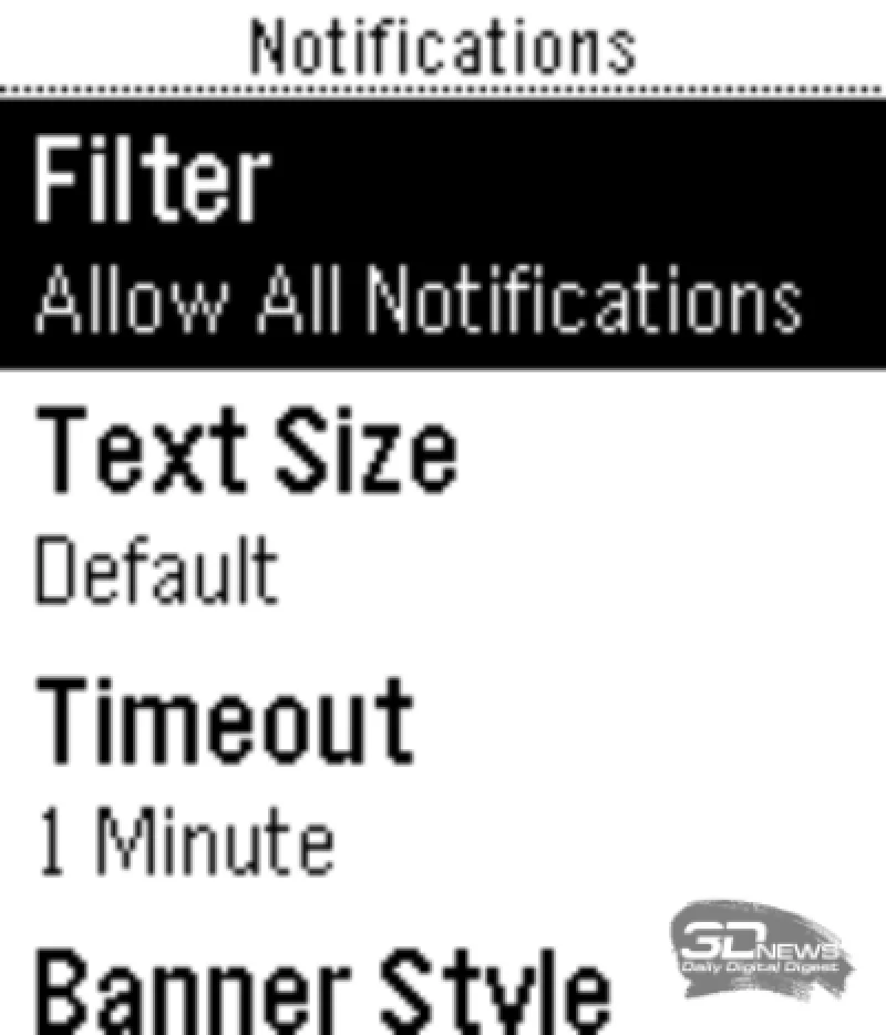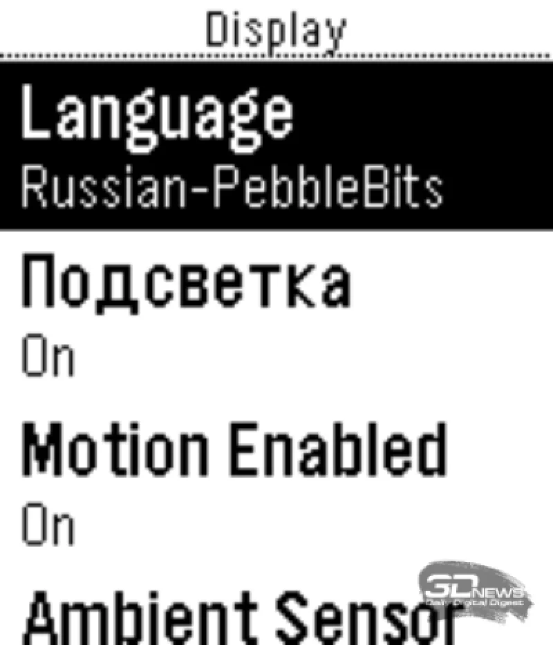 Что касается недостатков (к счастью, легко устранимых), то самым заметным для меня оказалась неспособность отображать кириллицу — вместо букв показывались лишь пустые квадратики. На англоязычный интерфейс я рассчитывал, но то, что на циферблате не читаются русские уведомления, стало неприятным сюрпризом. Решается это очень легко: нужно загрузить на телефон PBL-файл, например с GitHub, и открыть его через официальное приложение Pebble. После этого служебная программа всё сделает сама. Можно либо просто добавить поддержку кириллицы, либо частично перевести интерфейс. Однако «русификатор» создавался для ранних версий Pebble, поэтому он не полностью меняет язык системы, а лишь адаптирует отдельные элементы. Таким образом, на данный момент лучшим решением будет оставить интерфейс на английском, но добавить возможность чтения уведомлений на русском.