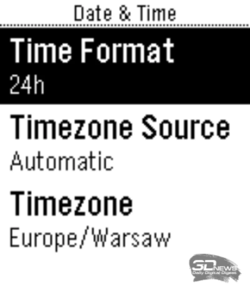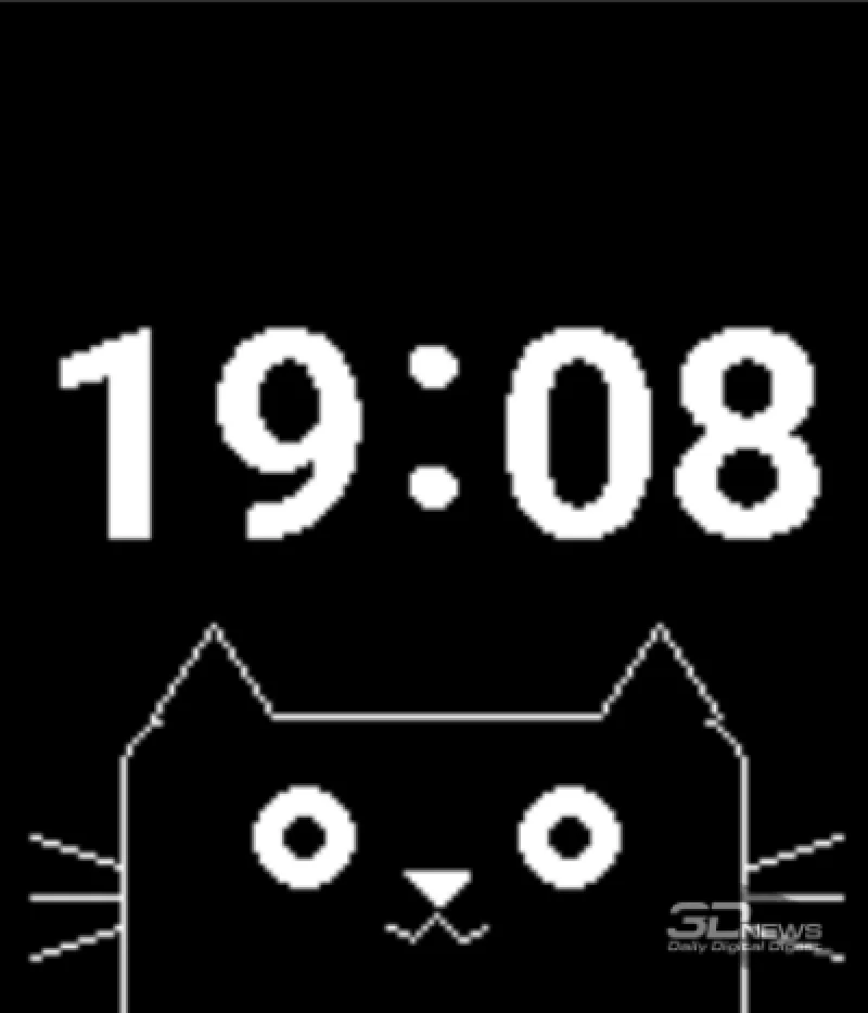 По нынешним стандартам экран весьма компактен — его диагональ составляет лишь 1,26 дюйма при разрешении 168 × 144 пикселей (плотность 176 точек на дюйм). Как и в предыдущих моделях Pebble, здесь используется монохромный дисплей Memory LCD от Sharp, выполненный по технологии электронных чернил. Изображение на нём становится чётче при ярком внешнем освещении. Экран по умолчанию всегда активен и непрерывно отображает циферблат, что очень практично. Также присутствует голубоватая подсветка, работающая достаточно экономно: по умолчанию она не очень яркая (яркость регулируется в настройках) и загорается всего на 3 секунды (это время также можно изменить), чего хватает, чтобы увидеть время или даже прочитать уведомление. Есть опция автоматической активации подсветки при подъёме запястья, но она срабатывает не всегда надёжно — порой приходится встряхнуть рукой, чтобы часы среагировали. Будем надеяться, что этот недочёт исправят в следующих версиях прошивки. Кроме того, подсветку можно включить, нажав кнопку «Назад».