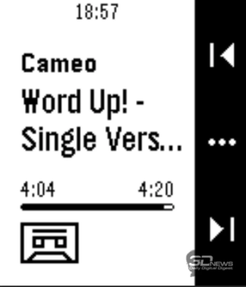 В Pebble 2 Duo также встроена возможность управления аудиоплеером смартфона. Можно ставить воспроизведение на паузу, переключать композиции и настраивать уровень громкости. Функция совместима как со встроенным плеером, так и со стриминговыми сервисами, например, Spotify.