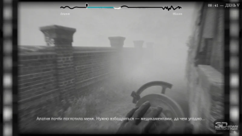Впрочем, если погрузитесь в глубокую апатию, то гибель от собственной руки (для противодействия суицидальным мыслям предусмотрена мини-игра) также весьма вероятна. Любое из этих состояний можно привести в норму: либо с помощью лекарства из аптечки (помня, что с каждым применением препараты будут действовать всё слабее), либо через взаимодействие с окружением. Раскачали качели на детской площадке — приобрели немного апатии; ударили по мусорному баку — добавили себе маниакальной энергии; застрелили человека в целях самообороны — тут же накатывает волна раскаяния, а следом подступает приступ апатии.