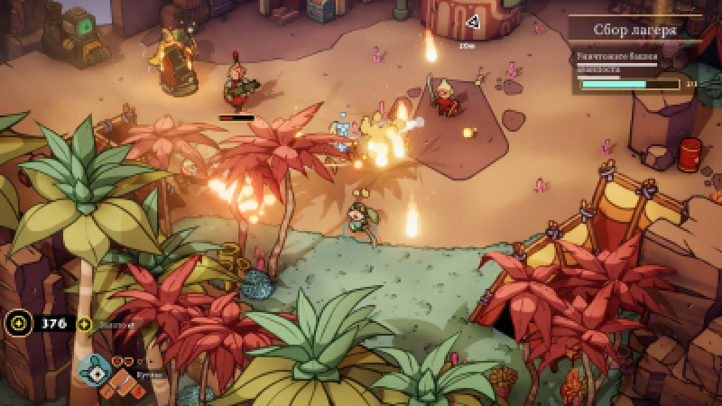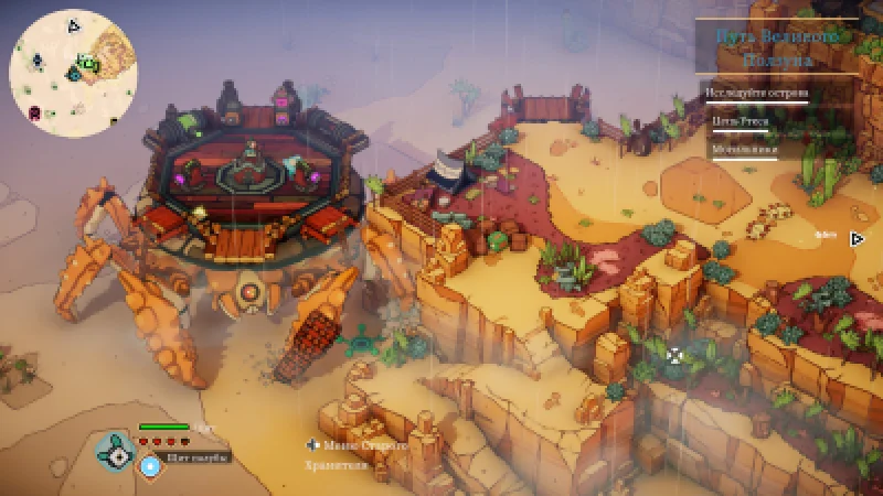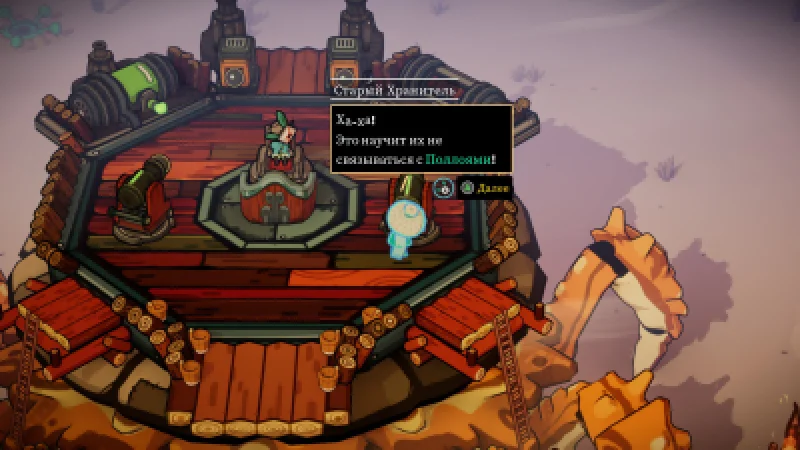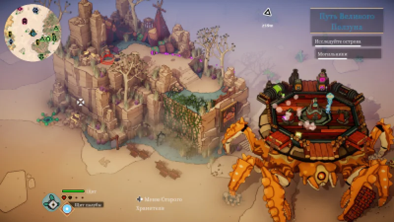 С механическим крабом возникает ещё одна сложность, особенно заметная в сольном прохождении. Управление им в DuneCrawl напоминает пилотирование судна в Sea of Thieves: нужно одновременно крутить штурвал, подносить снаряды к орудиям, вести огонь и чинить клешни — их целенаправленно атакуют, чтобы снизить вашу мобильность. Неудивительно, что без напарников эти обязанности быстро становятся монотонными. Для одиночных игр разработчики ввели Древнего Хранителя — духа, живущего на краулере, который помогает с частью задач (к примеру, заряжает пушки и атакует врагов). Однако ремонтом он не занимается вовсе, поэтому вся рутинная работа всё равно ложится на игрока, оставляя мало времени на активные столкновения.
