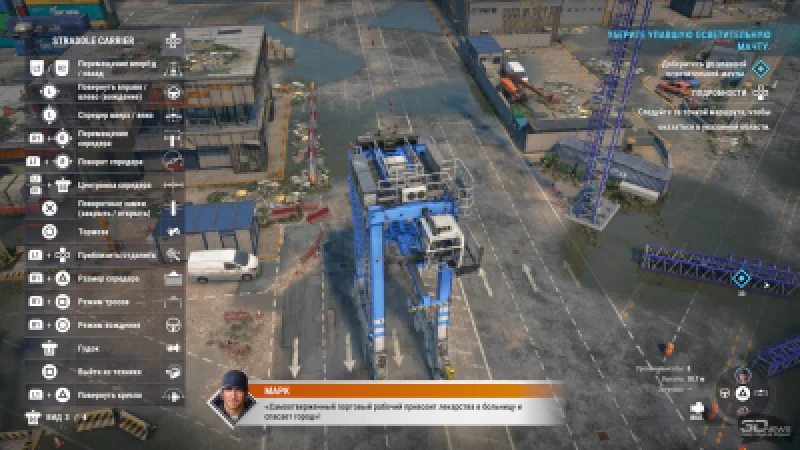 Однако в Docked внесли элементы повышенного реализма и взаимодействия. В предыдущих симуляторах от Saber герой чудесным образом перемещался из одного транспорта в другой, не покидая салона. Теперь же многие миссии стартуют вне техники — вы пешком направляетесь к грузовику, погрузчику или крану, взбираетесь по ступеням, иногда включаете питание, заводите мотор и лишь затем приступаете к делу. Порой требуется покинуть кабину, вернуться обратно и пересесть в другую машину, но чаще доступно стандартное переключение между героями, сопровождаемое репликами. Это тоже не революционное новшество (поклонникам жанра вряд ли требовалось подобное), однако без таких деталей данная игра стала бы менее интересной.
