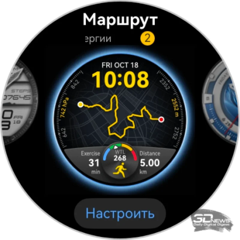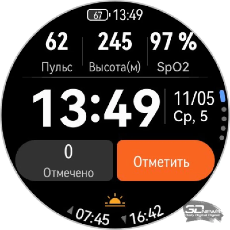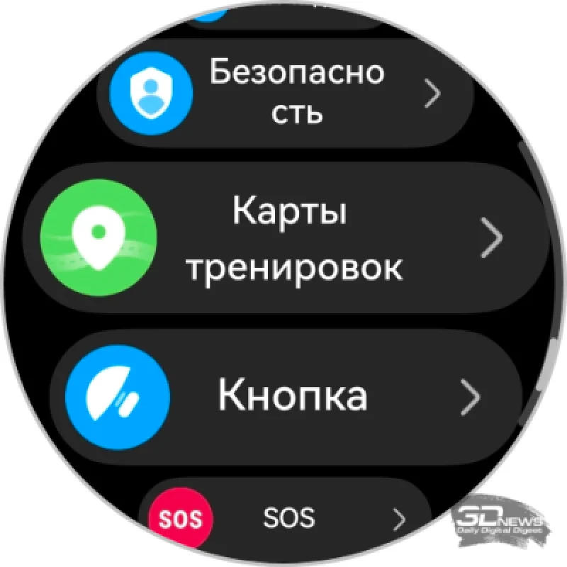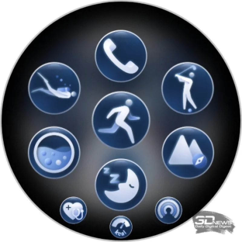 Третья кнопка не имеет жёстко заданного назначения – если в предыдущем поколении она активировала режим «Экспедиция», то теперь запускает тренировку для гольфа; пользователь может назначить на неё быстрый вызов любой функции, спортивного режима или приложения.