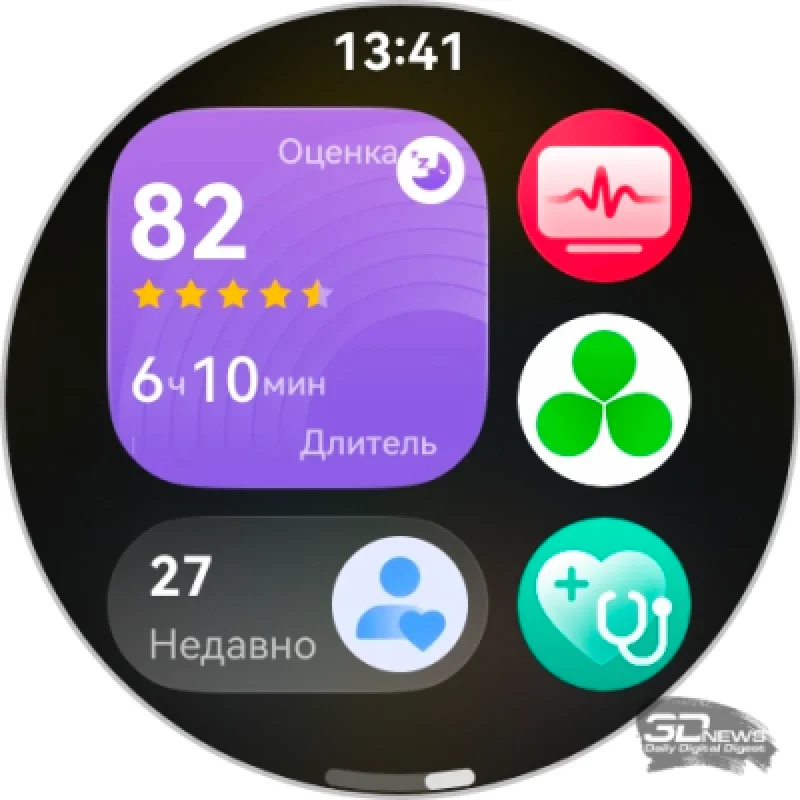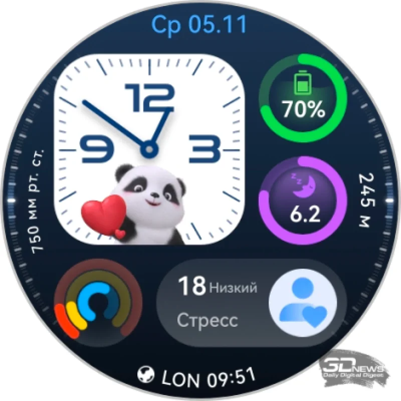 Внешний вид интерфейса полностью соответствует HUAWEI WATCH 5. Вместо отдельных экранов-виджетов здесь представлены страницы с группами компактных элементов, причём состав каждого экрана можно персонализировать. Теперь для доступа к данным о физическом состоянии, качестве сна или входящих вызовах требуется минимальное количество пролистываний. Оповещения со смартфона, как и раньше, вызываются свайпом от нижнего края дисплея, а панель быстрых настроек — от верхнего. Погодные сводки, события календаря и элементы управления медиаплеером расположены на крайней левой странице. Невероятно продуманный и эргономичный интерфейс — к сожалению, на данный момент он реализован лишь в топовых моделях, тогда как WATCH GT 6/GT 6 Pro оснащены