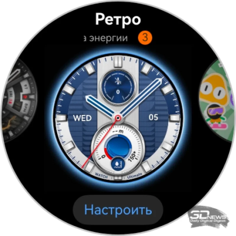 | Экран | 1,5-дюймовая матрица LTPO 2.0 AMOLED, HD-разрешение (466 × 466 пикселей), сенсорное управление, функция постоянной подсветки | 1,5-дюймовая панель LTPO AMOLED, HD-разрешение (466 × 466 пикселей), сенсорный интерфейс | 1,5-дюймовая матрица LTPO AMOLED, разрешение 466 × 466 пикселей, сенсорное управление, Always On (46-мм модификация); 1,38-дюймовая матрица LTPO AMOLED, разрешение 466 × 466 пикселей, сенсорное управление, Always On (42-мм модификация) |