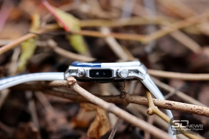 Корпус оснащён тремя кнопками, что отличает модель от других часов бренда. Две из них дублируют функционал WATCH 5 или WATCH GT 6/GT 6 Pro: первая обеспечивает навигацию по интерфейсу (вызывает меню приложений, позволяет прокручивать опции поворотом), вторая открывает панель быстрого доступа к тренировкам, звонкам и ЭКГ-мониторингу (двойное нажатие нижней кнопки возвращает к последнему использованному приложению).