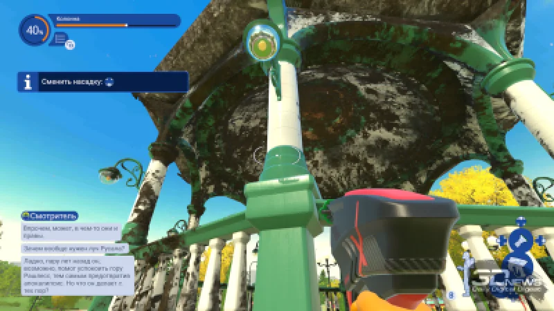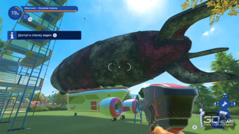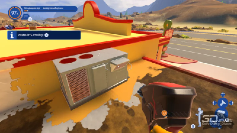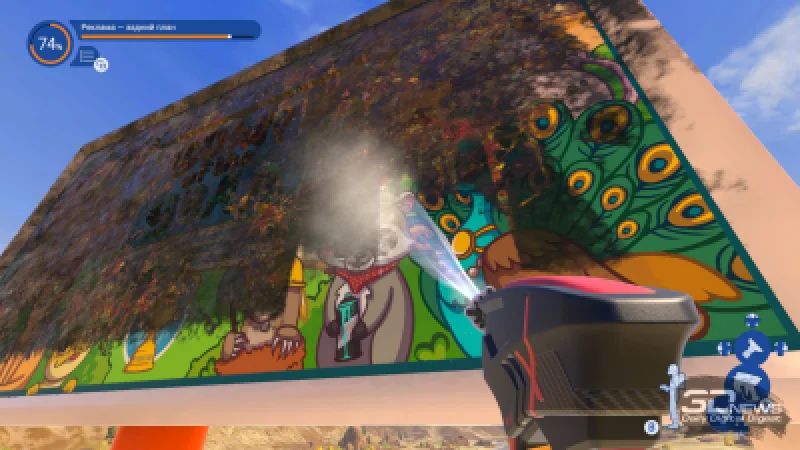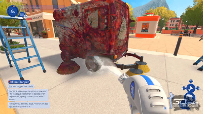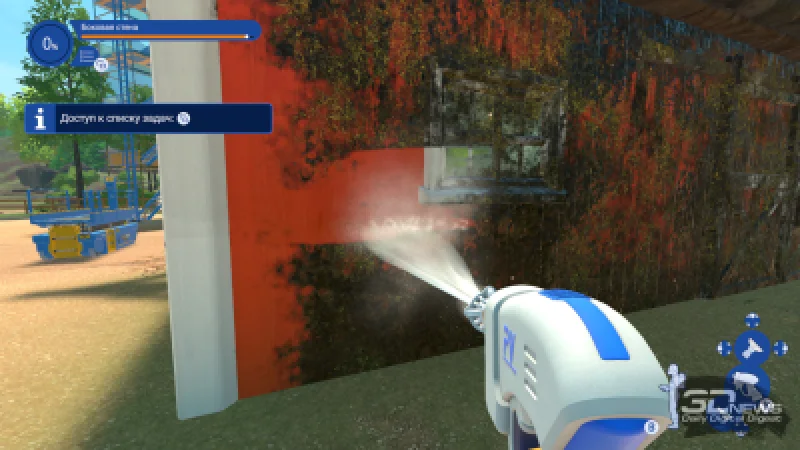 Даже с продвинутым оборудованием иногда возникает ситуация: кажется, всё безупречно очищено, но игра сообщает о достижении лишь 99% результата. Обычно это не критично — у каждого элемента есть индикатор чистоты, показывающий недоработанные зоны. Кроме того, многие объекты программно разделены на компоненты: например, кондиционер оценивается по отдельности — чистота воздухозаборной решётки, выходных отверстий, лопастей вентилятора и других деталей. Но в миссиях с гигантскими стенами или рекламными щитами поиск пропущенных точек превращается в испытание. Особенно выделяется задание с дирижаблем, где для доступа к сложным участкам приходится перемещать лестницы и подмости.