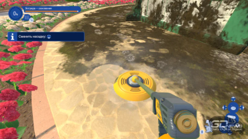 В каждом задании требуется довести до идеальной чистоты все элементы — даже если основным объектом становится жилое здание или компактная постройка, расположенные рядом скамейки, скульптуры и прочие декоративные предметы также подлежат тщательной очистке. Главный персонаж использует аппарат высокого давления с неограниченным запасом воды, который активируется зажатием клавиши и направляет поток в нужную сторону. Возникает соблазн выбрать самое широкое сопло для охвата максимальной территории и ускорения процесса, однако здесь есть нюанс — чем обширнее зона охвата насадки, тем ниже мощность водяной струи и короче дистанция эффективного воздействия. Поэтому приходится чередовать разные типы сопел — например, интенсивной струёй проблематично отчистить загрязнения на стеклянных поверхностях, а узконаправленной утомительно обрабатывать стены.