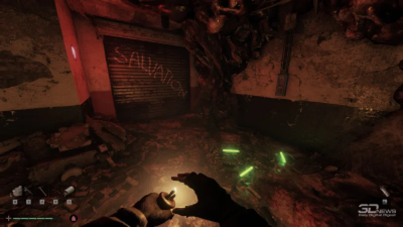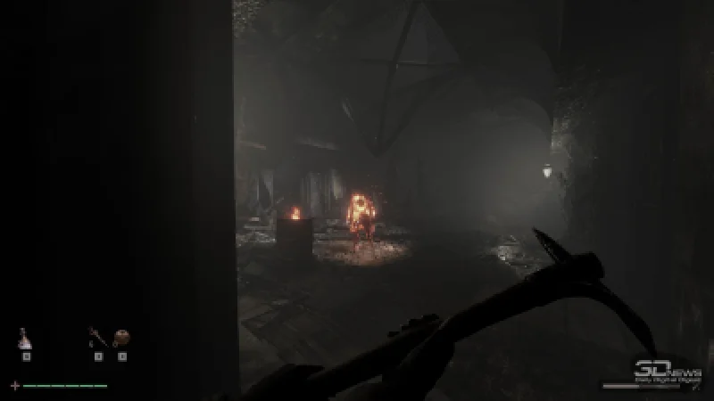 Вскоре становится ясно, что Форт Оазис отнюдь не пустует. Из темноты внезапно возникает угрожающий силуэт, а кирка, как на зло, ломается о ящики, преграждающие путь. Поэтому от кровожадного громилы (напоминающего усиленную версию импа — наследие Doom не забыто) приходится спасаться бегством. Коридоры сливаются в один поток, и теряешь ощущение, как долго и куда именно бежишь.