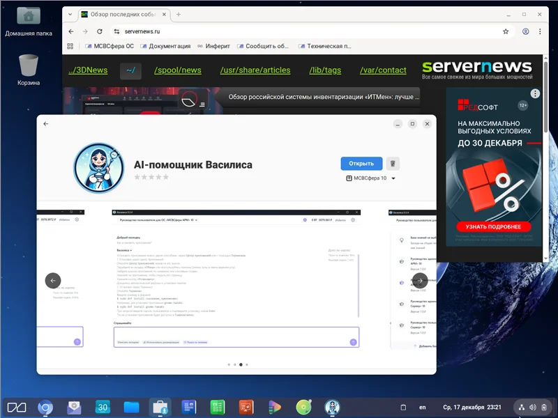 Кроме ИИ-ассистента «Василиса», в релиз ОС «МСВСфера» 10.1 также вошли конвертер аудио и видео, корпоративный менеджер Compass, офисный пакет «Р7-Офис», обновлённый «Центр приложений» и расширенная административная панель Cockpit.