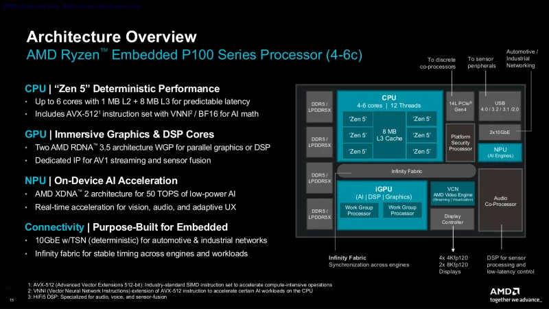 По заявлению AMD, модели серии P100 демонстрируют до трёхкратного превосходства в производительности искусственного интеллекта (AI TOPS) в сравнении с линейкой . Как отмечает издание Storagereview, это особенно важно для пользователей, которые обновляют текущие системы, стремясь повысить эффективность ИИ в расчёте на ватт и на плату в целом. Помимо автомобильной сферы, компания также нацеливает свои процессоры на оборудование для вещания, промышленные компьютеры, информационные киоски, медицинские приборы и даже аэрокосмическую отрасль.