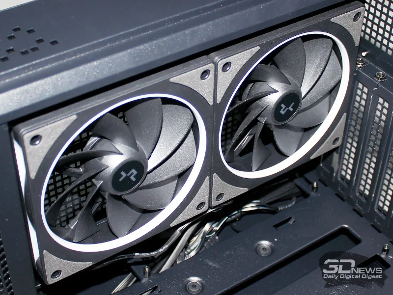 | Базовая система охлаждения | Два 120-мм вентилятора DeepCool FL12R SE ARGB (на вдув, реверсивные, с ШИМ-управлением и подсветкой) |