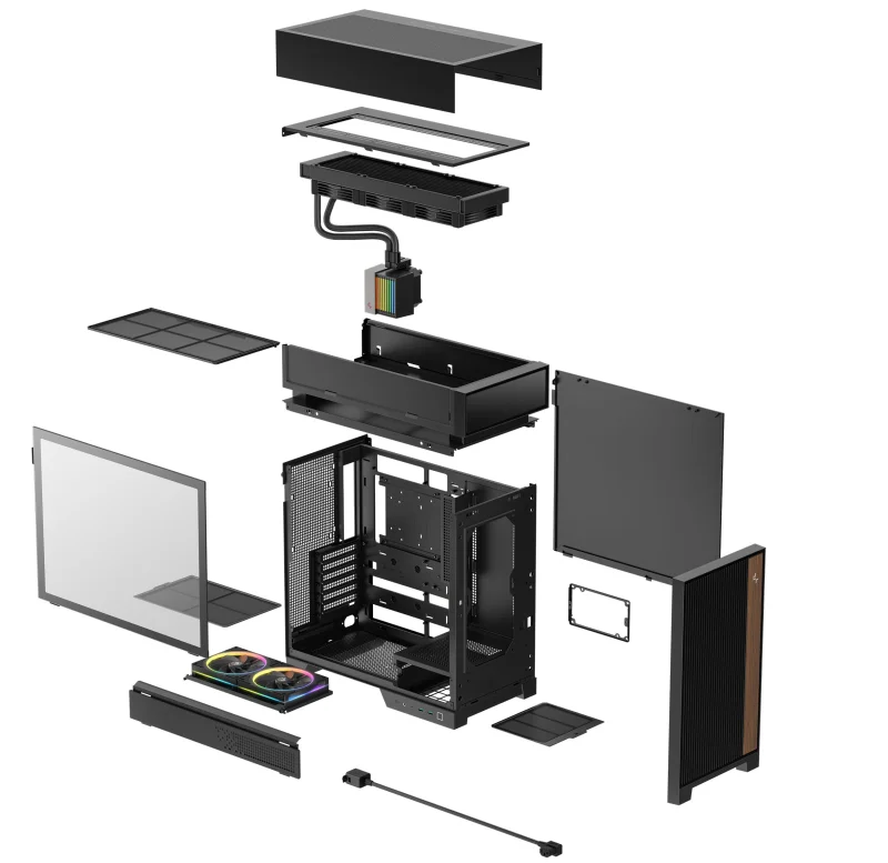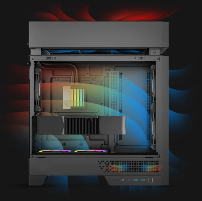 Модель CL6600 от DeepCool была впервые анонсирована в мае 2025 года на выставке Computex. Этот корпус формата Mid-Tower кардинально меняет привычные представления, благодаря своей уникальной конструкции с обособленной верхней секцией, где уже интегрирована СЖО с радиатором на 360 мм. Разработчики позиционируют это как революционный подход к дизайну, поскольку в CL6600 тепловые контуры и потоки воздуха изолированы друг от друга. Тепло от процессора в основной камере оперативно отводится системой жидкостного охлаждения, что создаёт оптимальные условия для работы остальных компонентов, включая производительные видеокарты и нагревающиеся элементы на материнской плате.