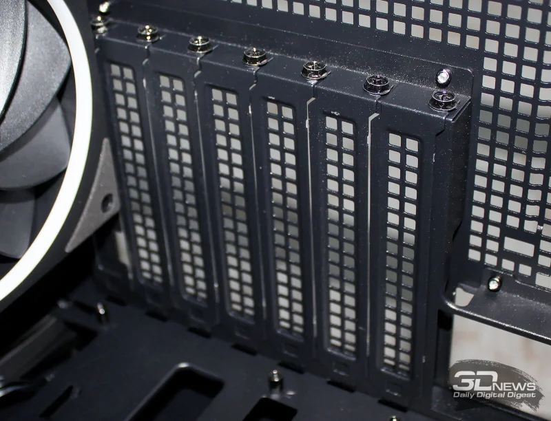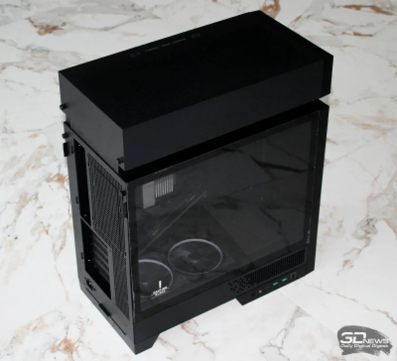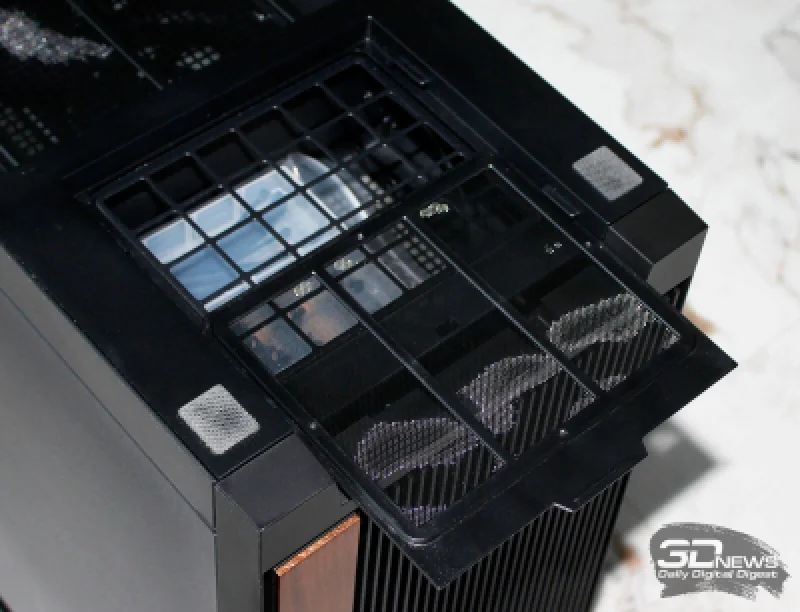 Боковые стенки и крышка отсека СВО крепятся с помощью винтов с рифлёными головками, а стеклянная панель в верхней секции удерживается пластиковыми защёлками.