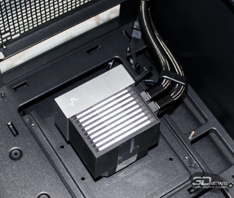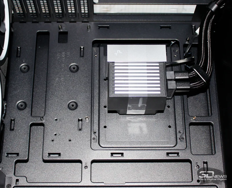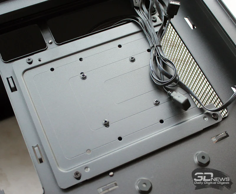 Как уже отмечалось ранее, для блока питания в корпусе предусмотрен нижний отсек со съёмной пластиковой крышкой.