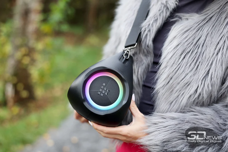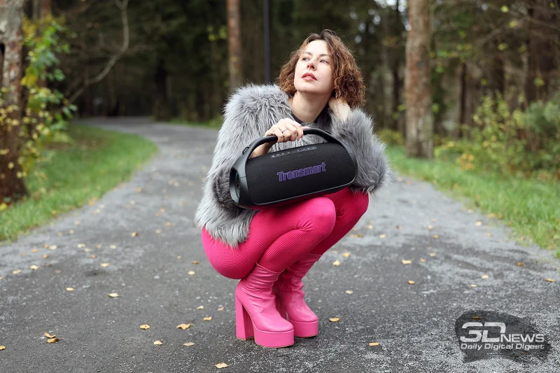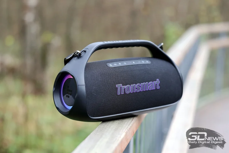Сразу отметим, что эта акустическая система создаёт поистине мощное звуковое давление, её ресурсов с лихвой хватит не просто для стандартной квартиры, но и для просторной гостиной в частном доме, а на открытом пространстве во время праздника она определённо не останется незамеченной. Звуковая палитра отличается насыщенностью, без характерного для многих аналогичных моделей перекоса в сторону низких частот. Скорее, басы могут восприниматься несколько сдержанными – на максимальной громкости при насыщенных низкочастотных композициях прослушивается лёгкая вибрация, да и общий частотный диапазон, как показали наши замеры, имеет определённые ограничения. Тем не менее, общее впечатление от звука Tronsmart Bang 2 остаётся благоприятным, эти моменты скорее относятся к тонкостям восприятия.