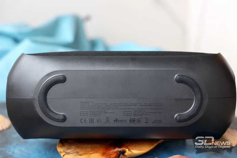 Снизу корпуса расположены две изогнутые резиновые ножки, обеспечивающие устойчивое положение Tronsmart Bang 2 на поверхности.