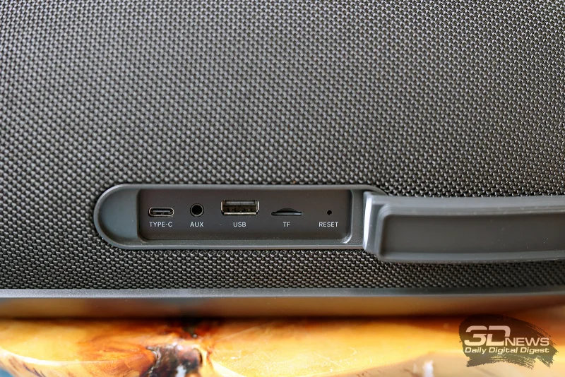 В отношении времени автономной работы изготовитель указывает до 26 часов при выключенной подсветке и половинном уровне громкости. Дальнейшие показатели зависят от конкретных условий использования. Устройство оснащено внушительным аккумулятором ёмкостью 18 000 мА·ч (3,7 В, 66,6 Вт·ч). Интересно, что колонка способна не только получать энергию для пополнения собственного заряда, но и выполнять функцию внешнего аккумулятора. Максимальная мощность входящей зарядки составляет 15 Вт (примерное время полной зарядки — 4,5 часа), тогда как отдаваемая мощность достигает 10 Вт.
