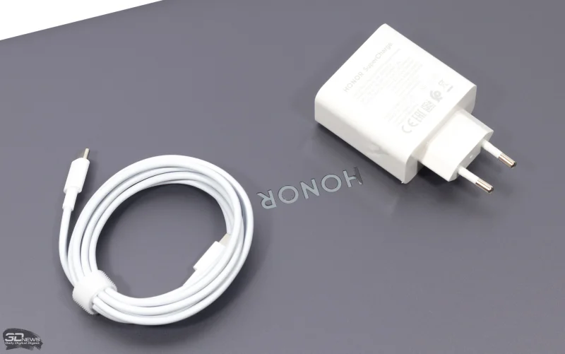 Входящий в комплект адаптер питания, соответствующий стандарту USB PD, оснащен отсоединяемым кабелем и обеспечивает мощность до 65 Вт.