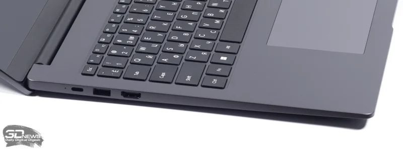 На боковых гранях корпуса расположены два порта USB Type-A (стандарты 3.2 Gen 1 и Gen 2), а также один разъем Type-C, который также поддерживает скорость 3.2 Gen 2 и используется для подключения питания или передачи видеосигнала на внешний монитор. Кроме того, MagicBook X16 2026 оборудован полноразмерным выходом HDMI и комбинированным аудиоразъемом TRRS для подключения гарнитуры или наушников.