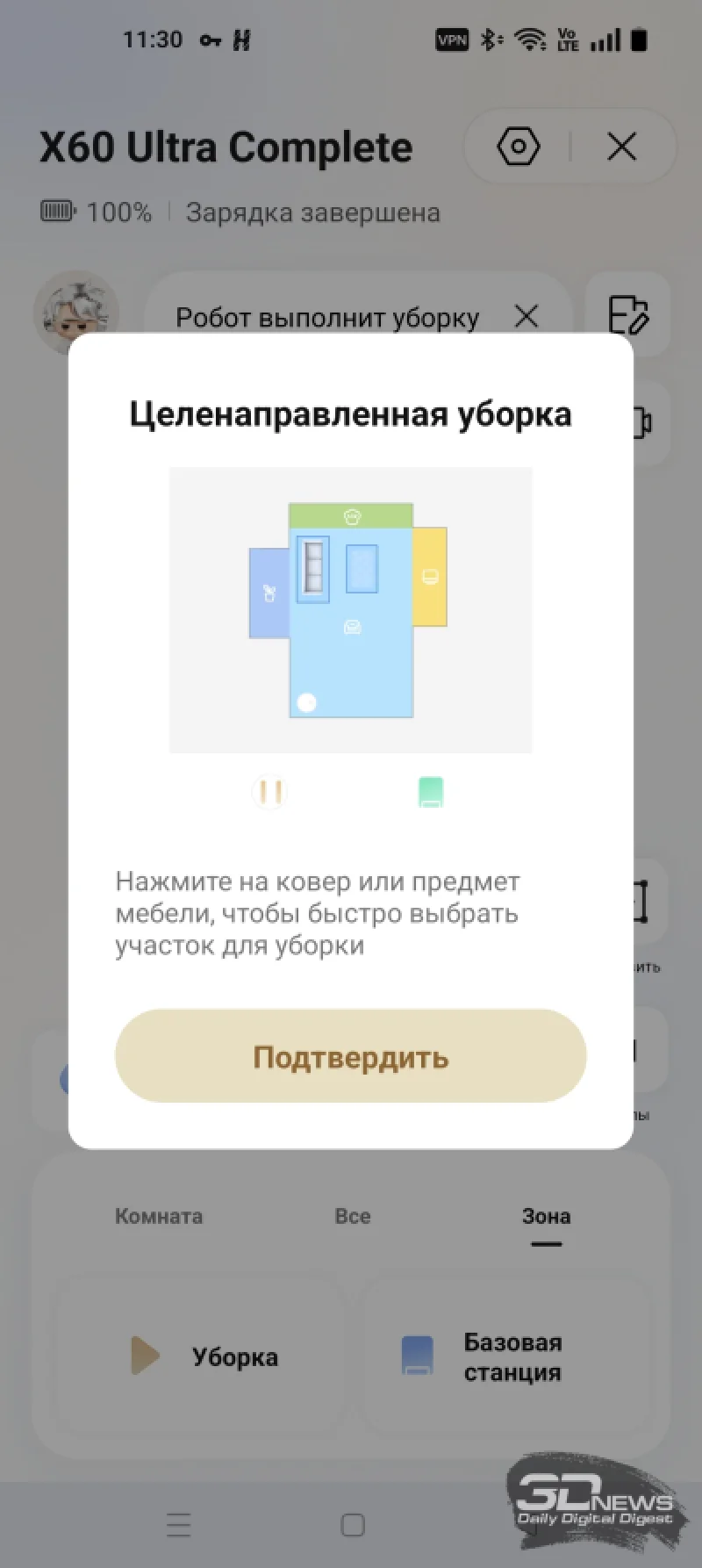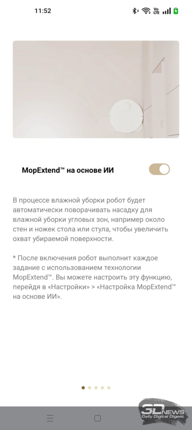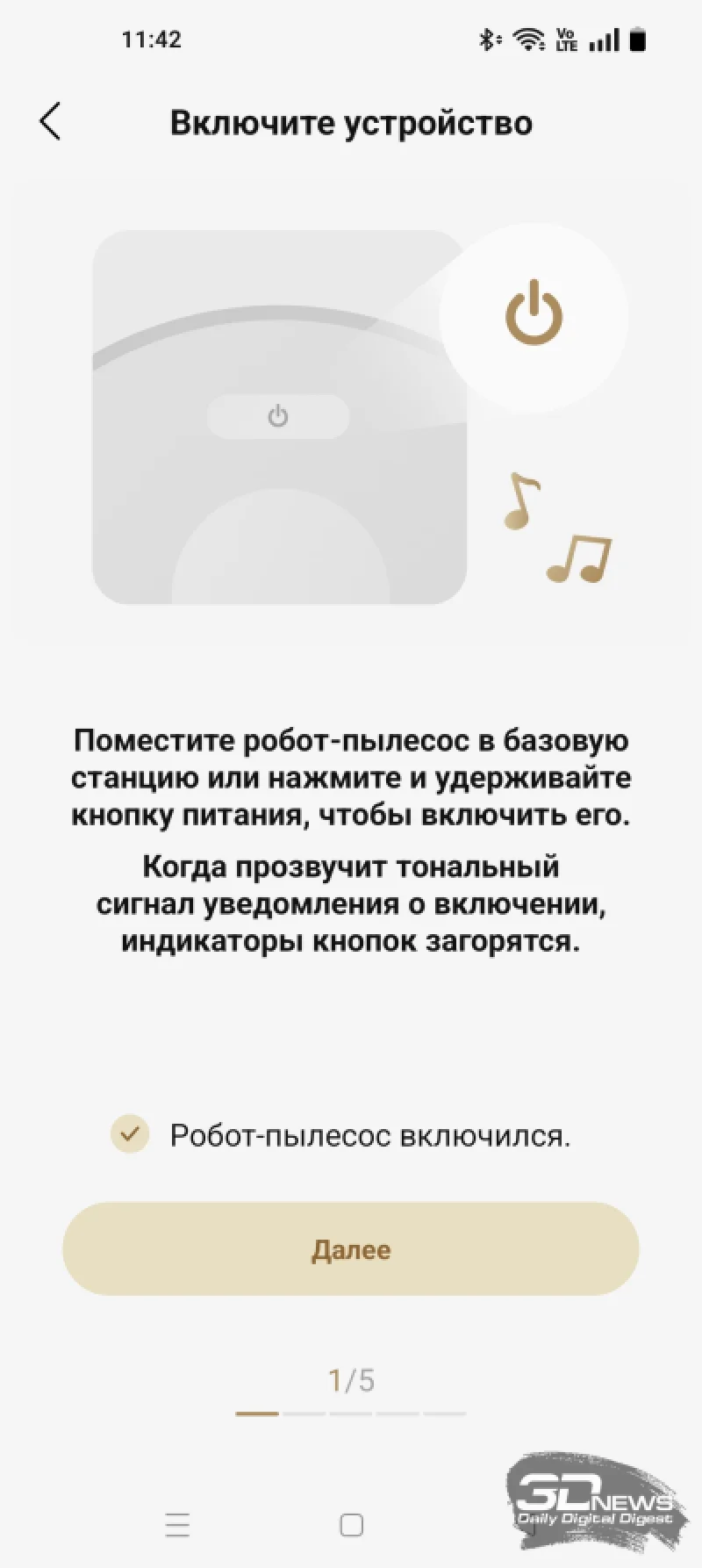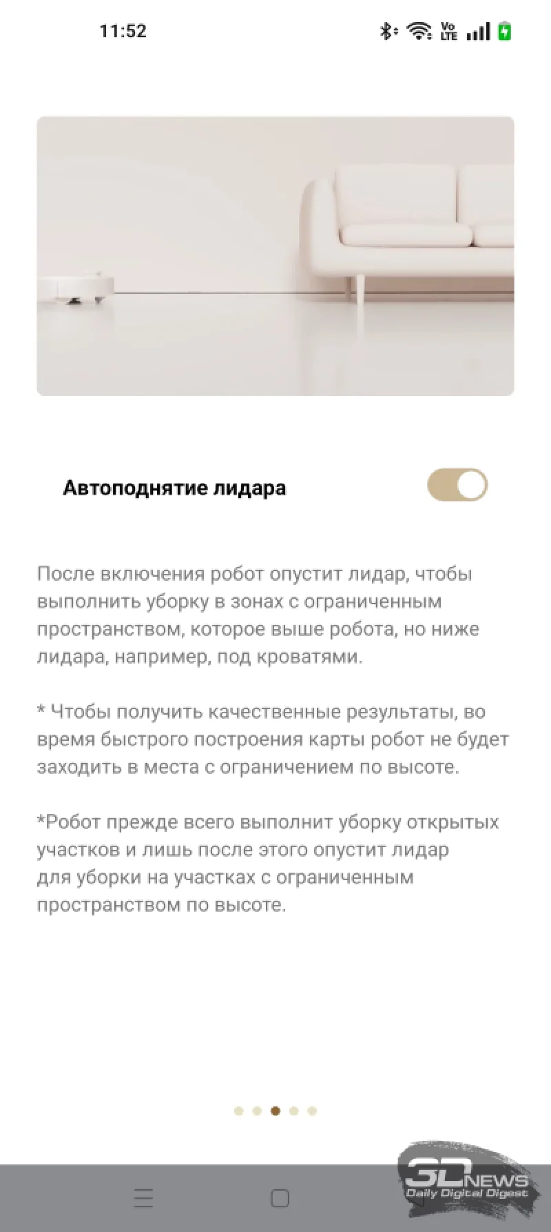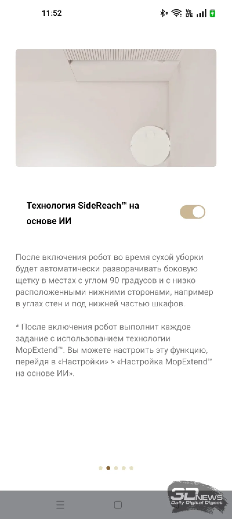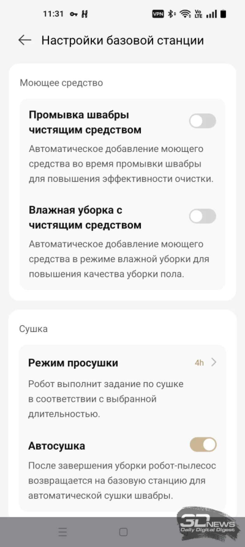 Чтобы «шестидесятая» модель функционировала корректно, требуется инсталлировать на телефон программу Dreamehome, которая существует для Android и iOS. Это приложение даёт возможность настраивать как сам робот-пылесос, так и его станцию автоматической очистки. Интерфейс утилиты полностью русифицирован и содержит множество вспомогательных указаний. Подсоединение устройства к домашней сети Wi-Fi с единым именем (SSID) для диапазонов 2,4 и 5 ГГц и смешанной защитой WPA2/WPA3 прошло без затруднений, а модель была распознана через QR-код. Весь процесс занял от силы пару минут — потребовались лишь регистрация в программе и доступ в сеть.