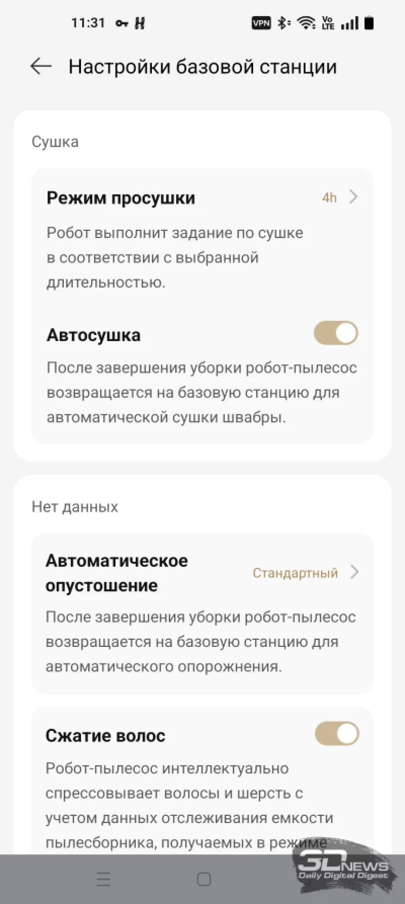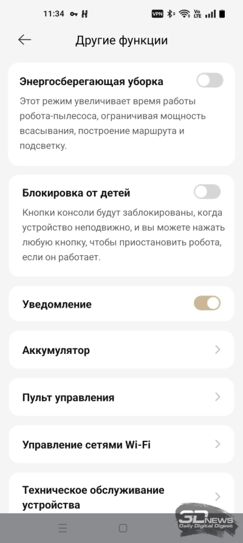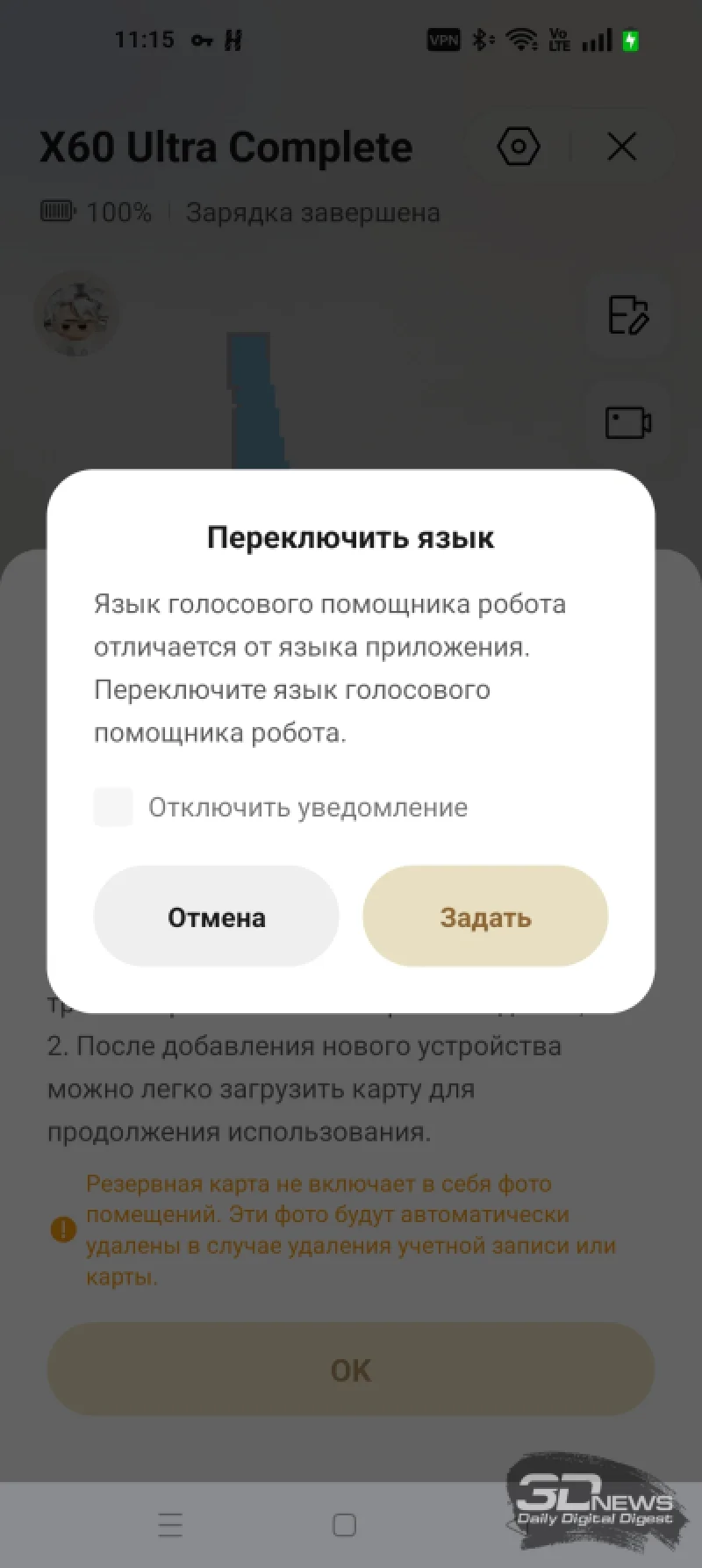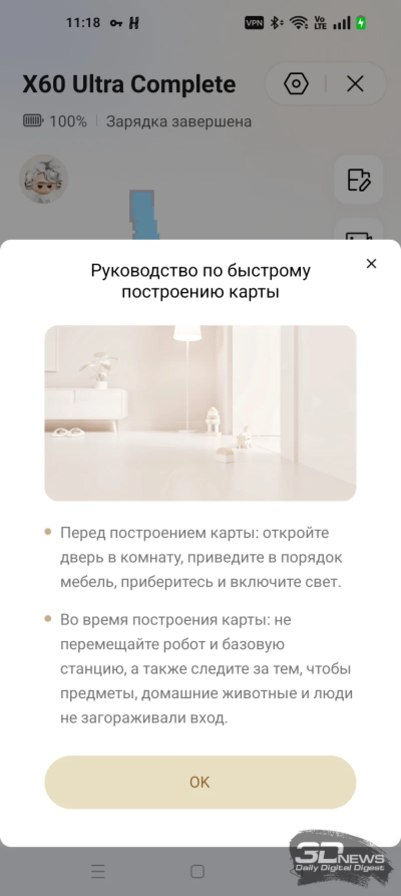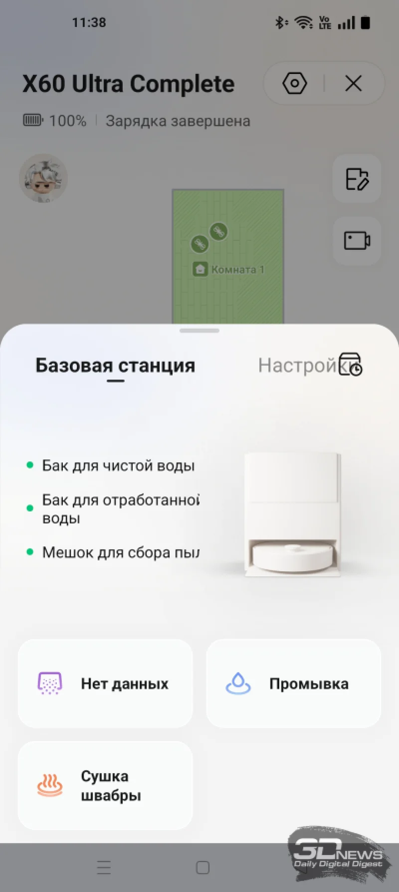 Чтобы «шестидесятая» модель функционировала корректно, требуется инсталлировать на телефон программу Dreamehome, которая существует для Android и iOS. Это приложение даёт возможность настраивать как сам робот-пылесос, так и его станцию автоматической очистки. Интерфейс утилиты полностью русифицирован и содержит множество вспомогательных указаний. Подсоединение устройства к домашней сети Wi-Fi с единым именем (SSID) для диапазонов 2,4 и 5 ГГц и смешанной защитой WPA2/WPA3 прошло без затруднений, а модель была распознана через QR-код. Весь процесс занял от силы пару минут — потребовались лишь регистрация в программе и доступ в сеть.