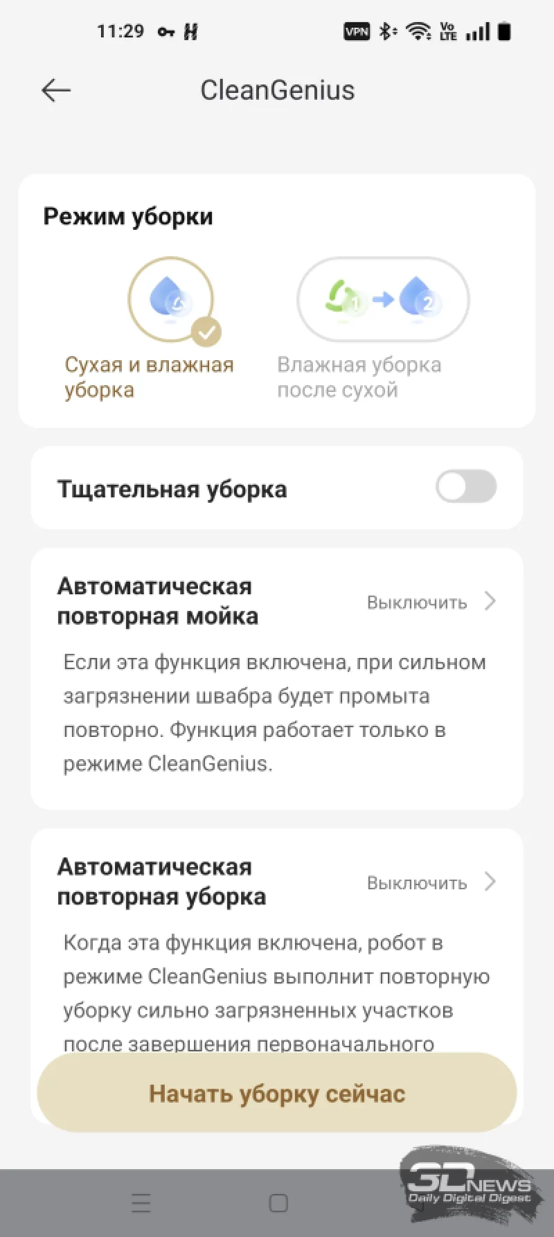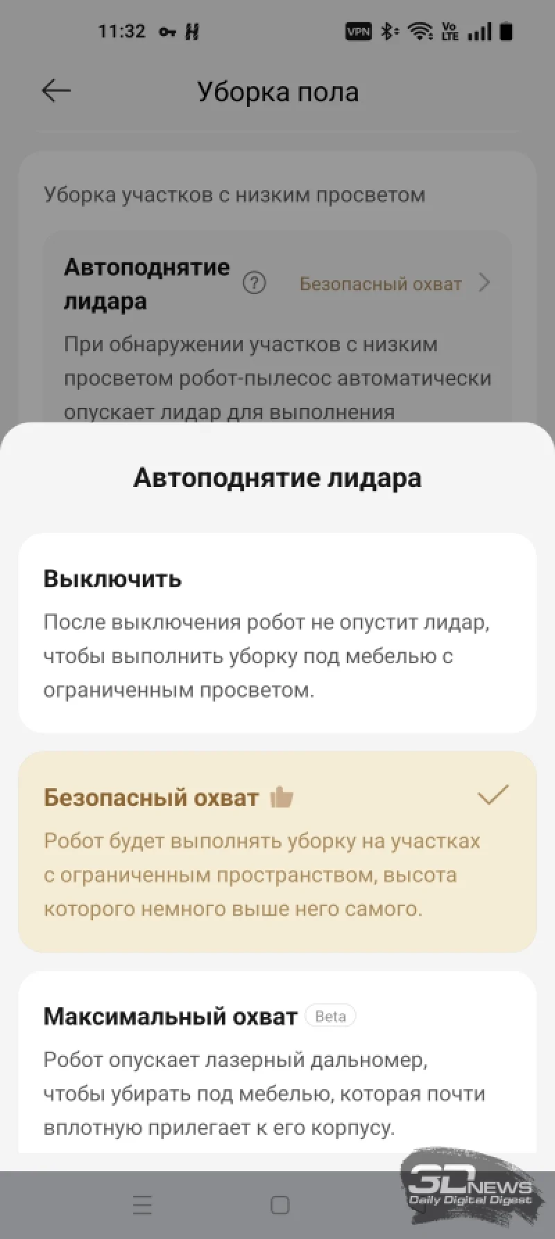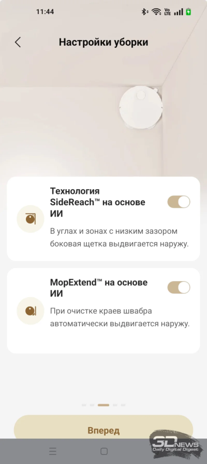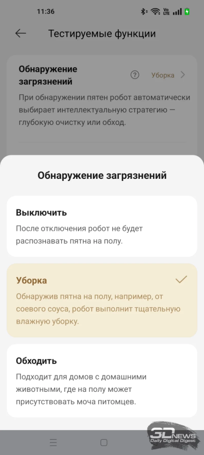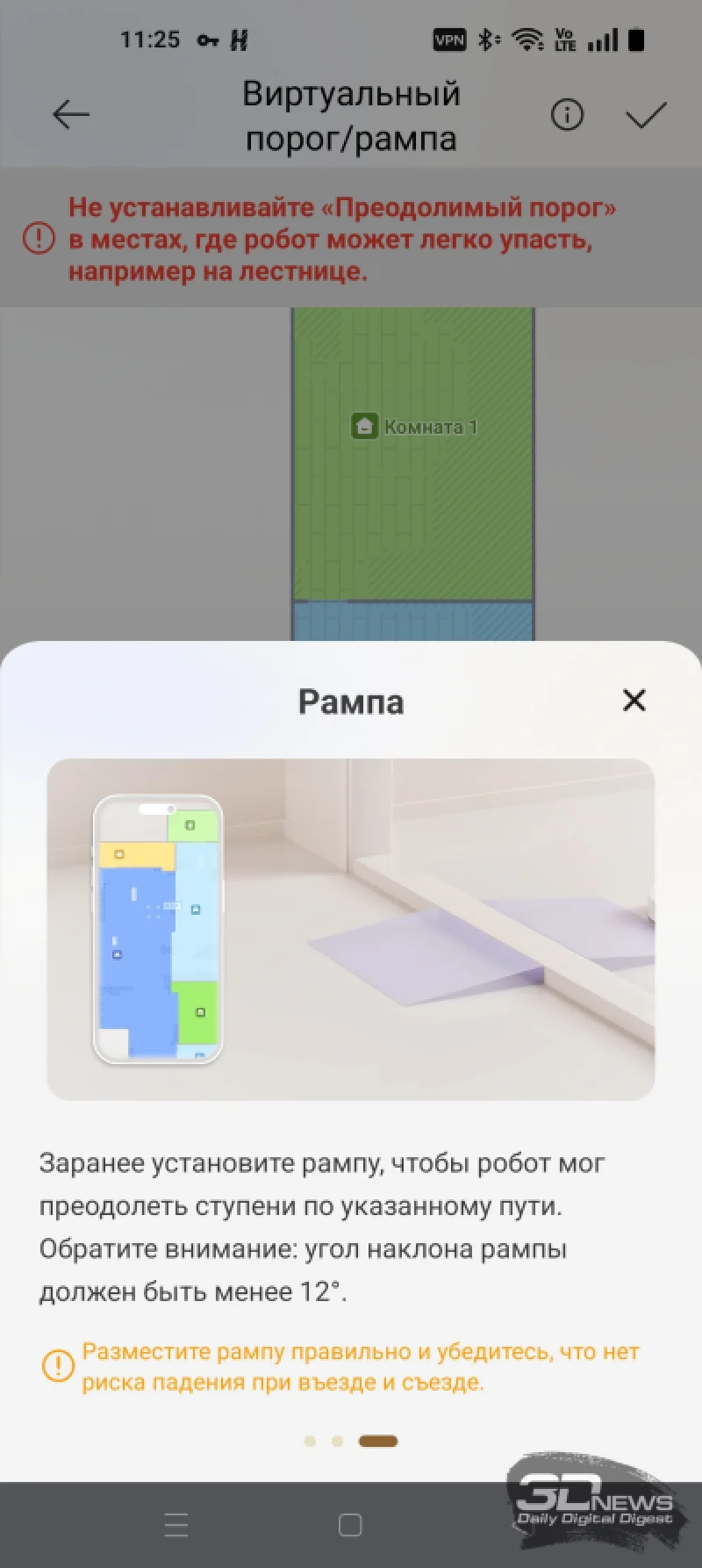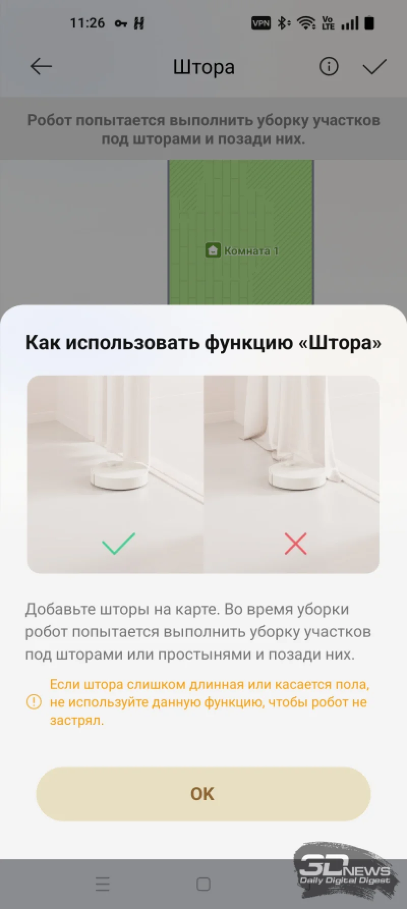 Чтобы «шестидесятая» модель функционировала корректно, требуется инсталлировать на телефон программу Dreamehome, которая существует для Android и iOS. Это приложение даёт возможность настраивать как сам робот-пылесос, так и его станцию автоматической очистки. Интерфейс утилиты полностью русифицирован и содержит множество вспомогательных указаний. Подсоединение устройства к домашней сети Wi-Fi с единым именем (SSID) для диапазонов 2,4 и 5 ГГц и смешанной защитой WPA2/WPA3 прошло без затруднений, а модель была распознана через QR-код. Весь процесс занял от силы пару минут — потребовались лишь регистрация в программе и доступ в сеть.