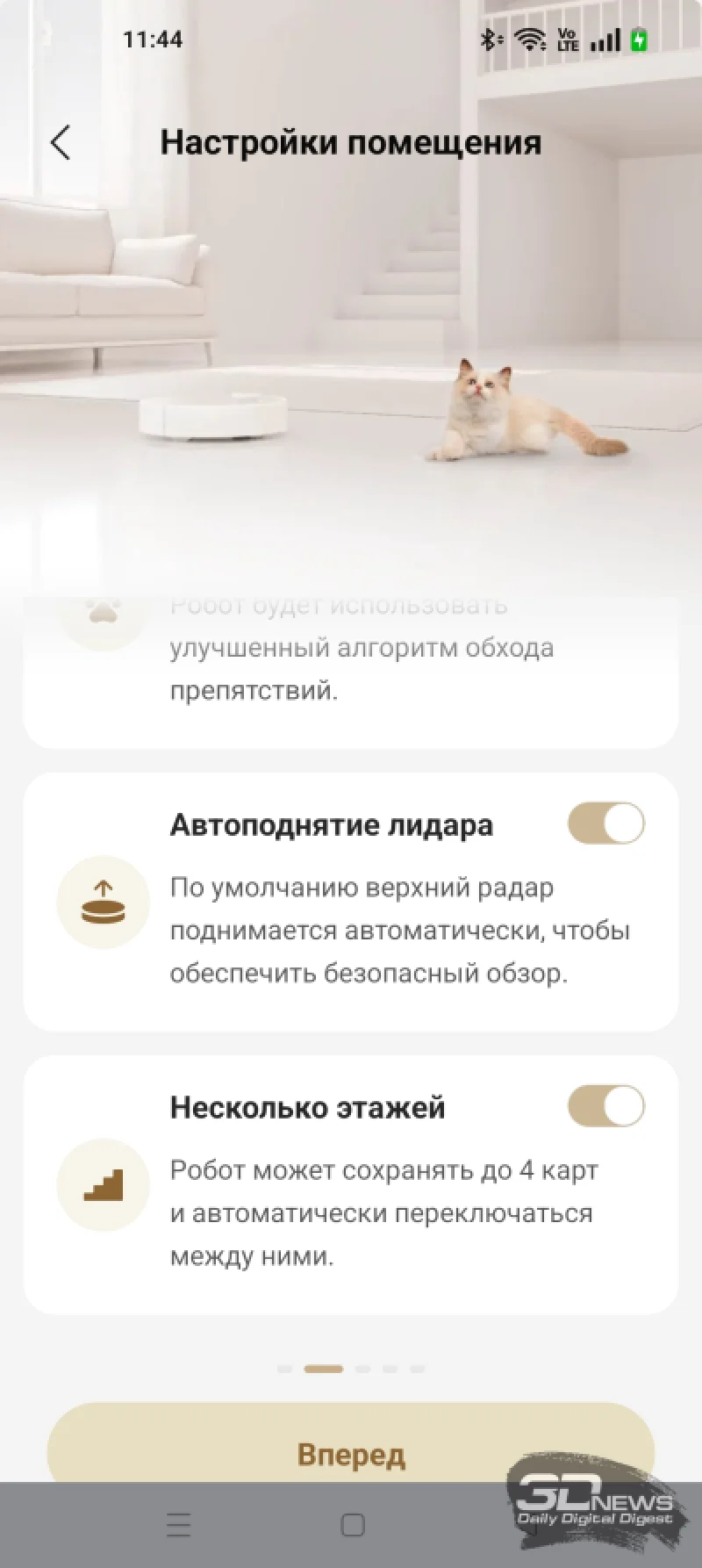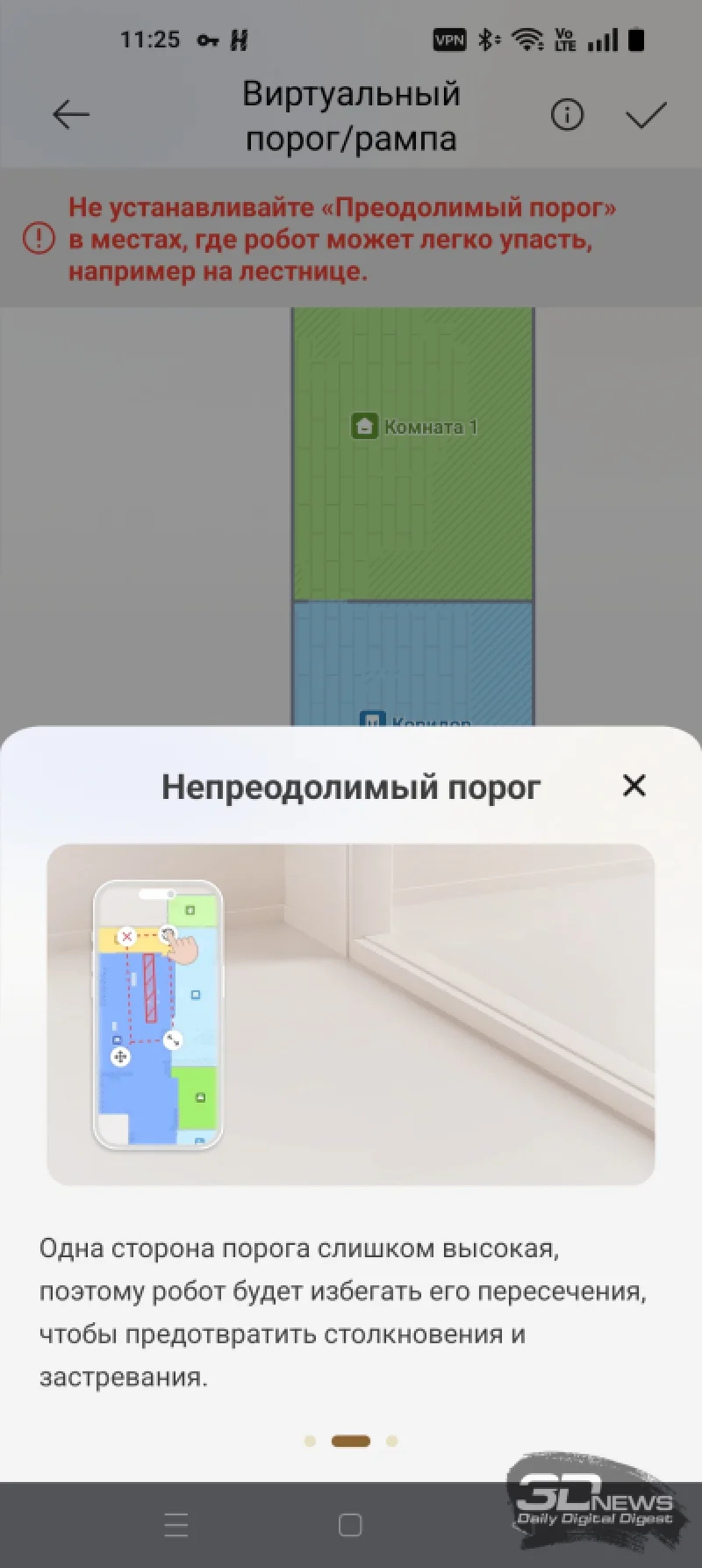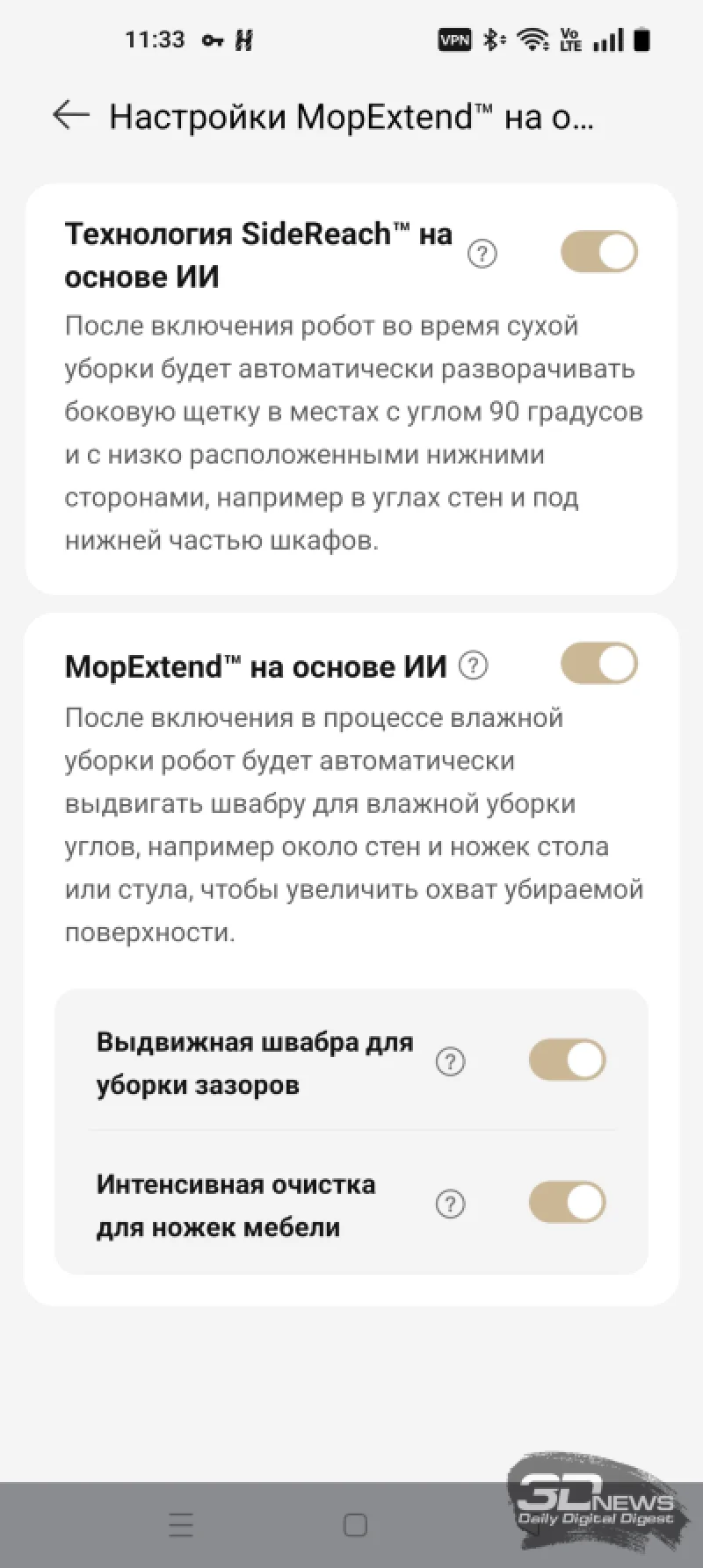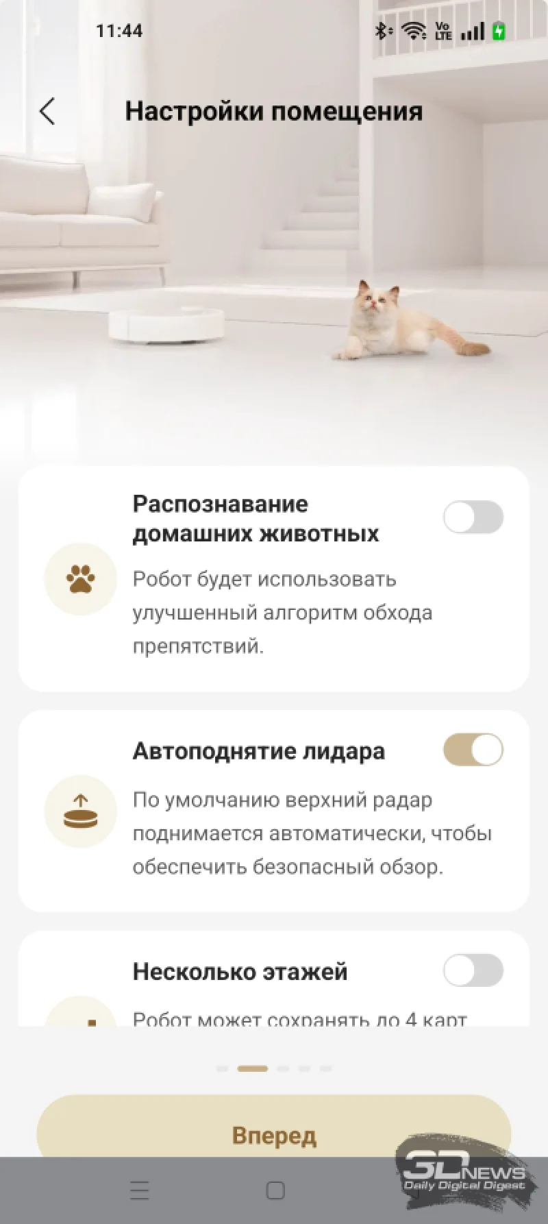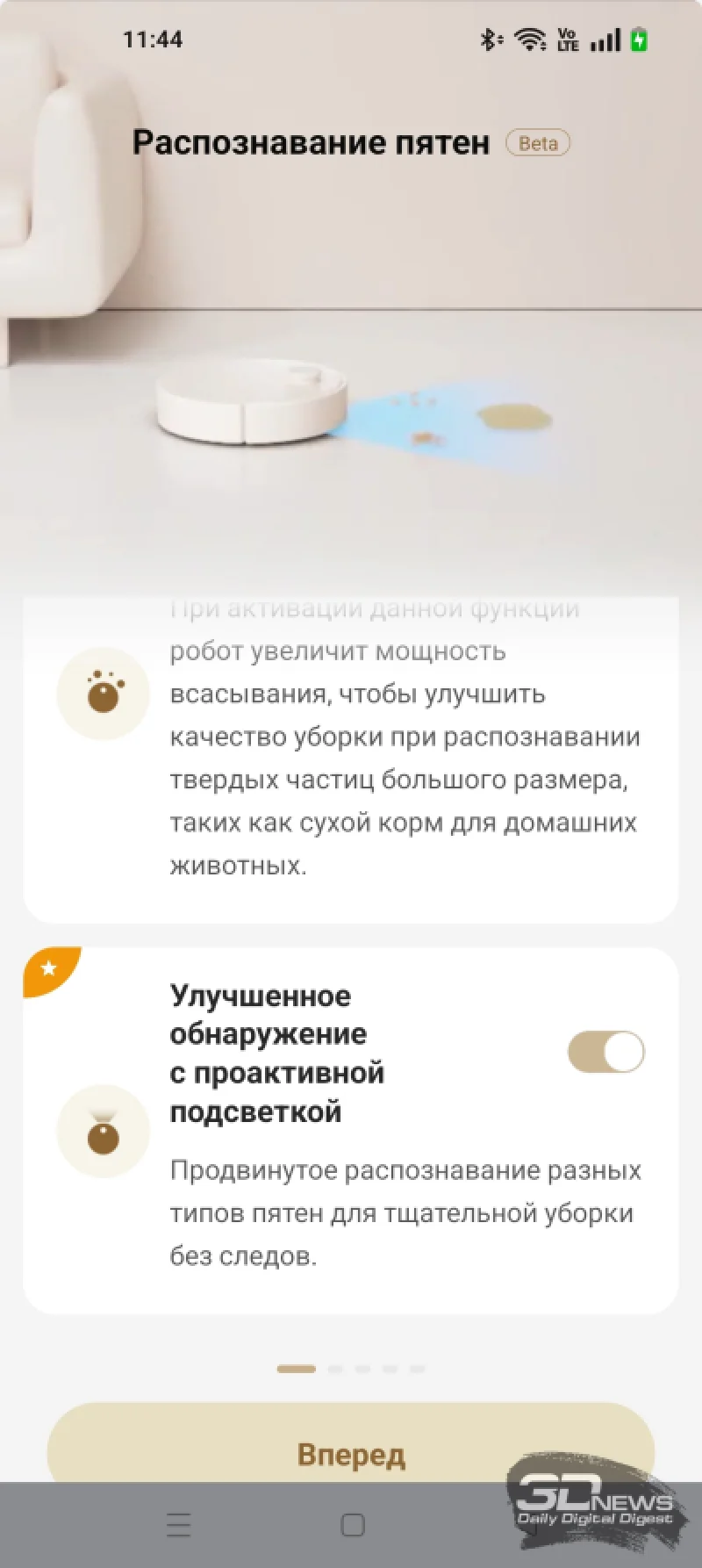 Чтобы «шестидесятая» модель функционировала корректно, требуется инсталлировать на телефон программу Dreamehome, которая существует для Android и iOS. Это приложение даёт возможность настраивать как сам робот-пылесос, так и его станцию автоматической очистки. Интерфейс утилиты полностью русифицирован и содержит множество вспомогательных указаний. Подсоединение устройства к домашней сети Wi-Fi с единым именем (SSID) для диапазонов 2,4 и 5 ГГц и смешанной защитой WPA2/WPA3 прошло без затруднений, а модель была распознана через QR-код. Весь процесс занял от силы пару минут — потребовались лишь регистрация в программе и доступ в сеть.