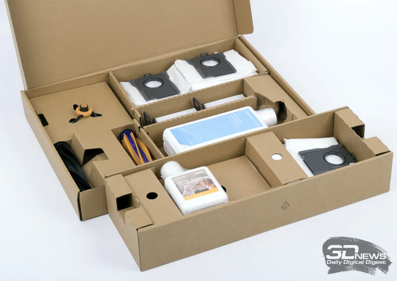 Как видно, Dreame щедро укомплектовала устройство. Обширный набор аксессуаров, чистящих средств и запасных частей обязательно порадует нового владельца модели «Ультра».