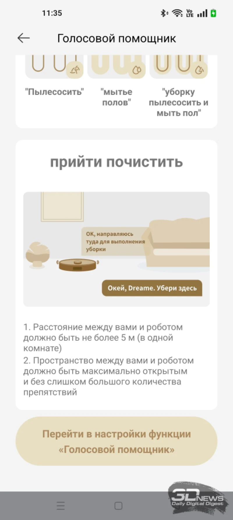 Кроме мобильного приложения Dreamehome, управлять моделью X60 Ultra Complete можно с помощью голоса. Устройство работает с фирменным голосовым сервисом. Достаточно сказать: «Окей, Dreame», чтобы начать уборку в доме. Кроме того, данная модель, как и другие продукты Dreame, поддерживает популярные голосовые ассистенты, включая Siri, Alexa, «Алису» и «Марусю».