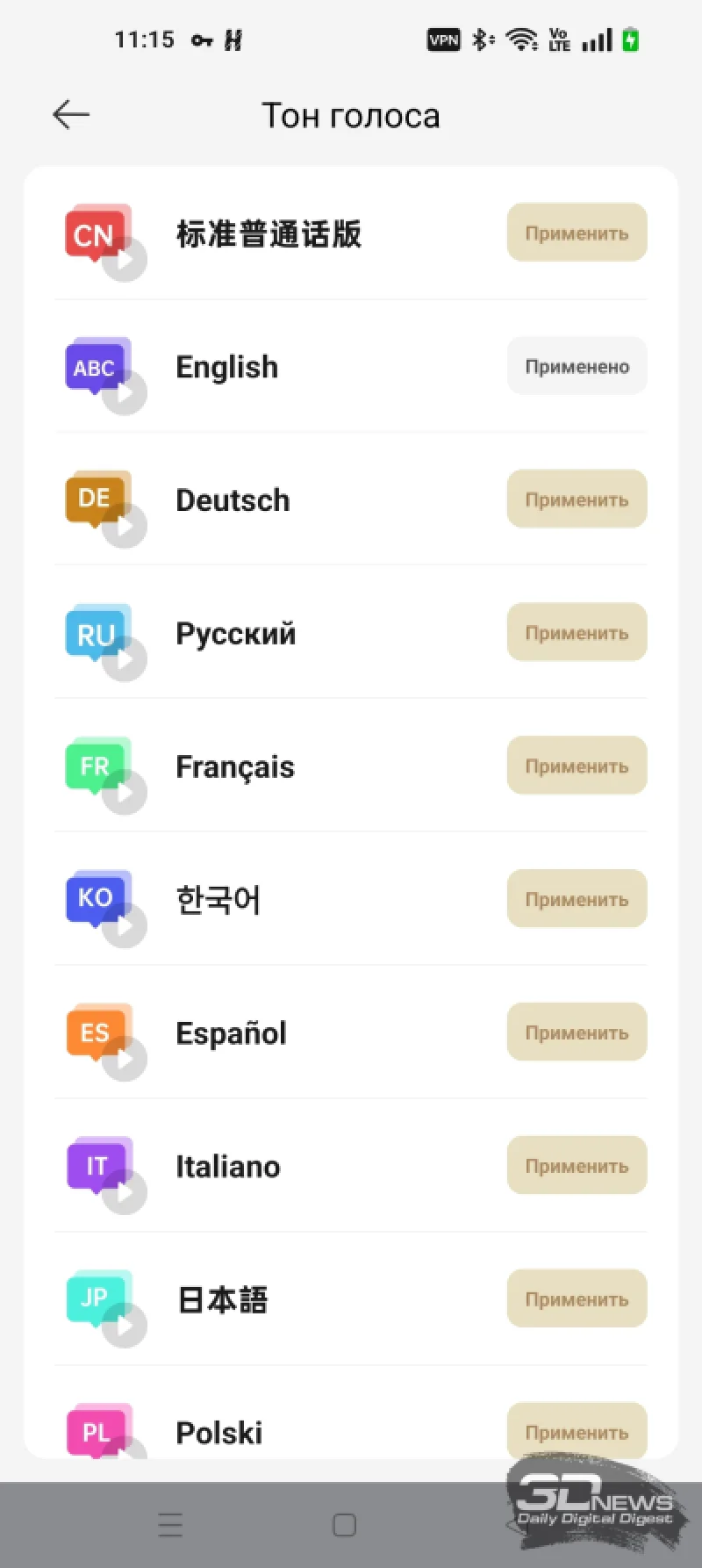 - выбрать язык интерфейса приложения и голосовых сообщений;