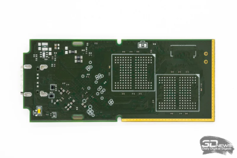 Помимо контроллера и флеш-памяти, на плате SSD нет ничего примечательного. Поскольку это внешний накопитель, предназначенный для копирования файлов и не рассчитанный на интенсивные нагрузки с мелкими блоками, в нем не предусмотрен DRAM-буфер. В обычных условиях это не должно влиять на скорость, а конструкция без DRAM также устраняет проблемы, связанные с переносом данных из буфера во флеш-память при внезапном отключении от USB-порта, через который накопитель получает питание.