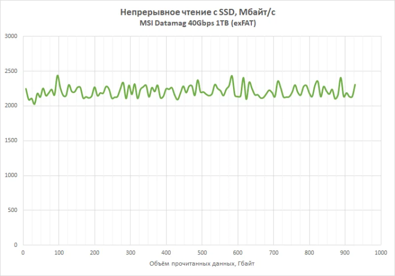 Однако такие скорости чтения Datamag 40Gbps продемонстрирует только при использовании быстрой файловой системы NTFS. Если же отформатировать его под более универсальную файловую систему exFAT, то чтение замедлится до 2,0-2,4 Гбайт/с.