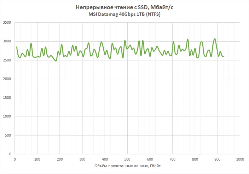 Зато чтение с него происходит гораздо быстрее, чем запись. Например, при простом копировании с него файлов средствами Windows на более производительный накопитель можно рассчитывать на скорости от 2,5 до 3,1 Гбайт/с.