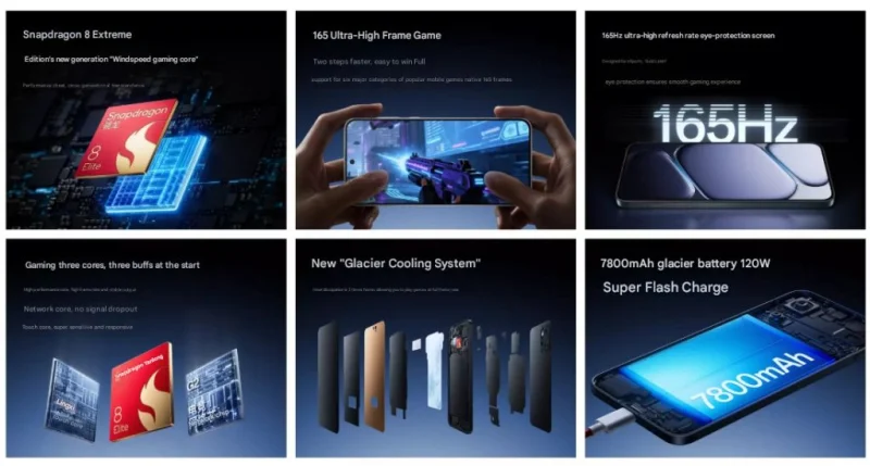 Аппарат оснащён 6,83-дюймовым AMOLED-дисплеем с разрешением 2800 × 1272 точек, пиковой яркостью 1800 нит и адаптивной частотой обновления от 60 до 165 Гц. Сердцем устройства стал 3-нанометровый чипсет Snapdragon 8 Elite Extreme Edition с графическим ускорителем Adreno 830. Пользователям доступны версии с 12 или 16 ГБ оперативной памяти LPDDR5X и накопителем объёмом от 256 ГБ до 1 ТБ. Для терморегуляции применяется система охлаждения Glacier Cooling System с вакуумной камерой.