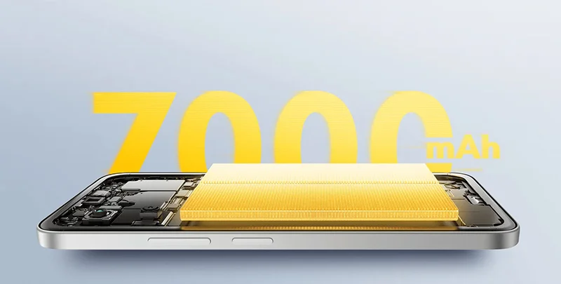 Работу смартфона обеспечивает аккумулятор ёмкостью 7000 мА·ч с поддержкой быстрой зарядки мощностью 33 Вт. Poco M7 оборудован стереодинамиками с технологией Dolby Atmos и сертификацией Hi-Res Audio. Устройство соответствует степени защиты от влаги и пыли по стандарту IP64. В качестве операционной системы используется Xiaomi HyperOS 2.