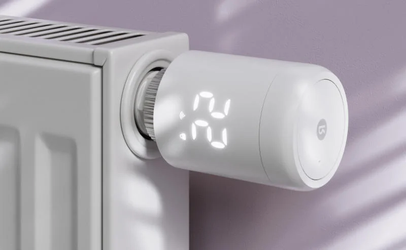 Умный терморегулятор для радиаторов интегрируется в систему умного дома через протокол Zigbee и реагирует на голосовые инструкции или команды из мобильного приложения. Модель выделяется небольшими габаритами и низким уровнем шума — не более 35 дБ. Устройство обладает функцией «интеллектуального климат-контроля»; в набор поставки входит семь адаптеров для совместимости с большинством типов радиаторов. Элементов питания хватает на два года непрерывной эксплуатации.