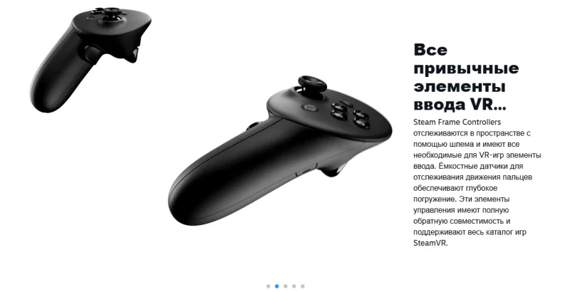 Устройство комплектуется контроллерами Steam Frame Controller. На каждом присутствуют кнопки ABXY, направленный крест, магнитные джойстики с ёмкостным касанием, аналоговые курки, верхние кнопки-бамперы, двухпозиционные кнопки захвата, а также тактильный отклик и система считывания положения пальцев. Вес одного контроллера — 130 г, время работы от одной батарейки АА достигает примерно 40 часов.